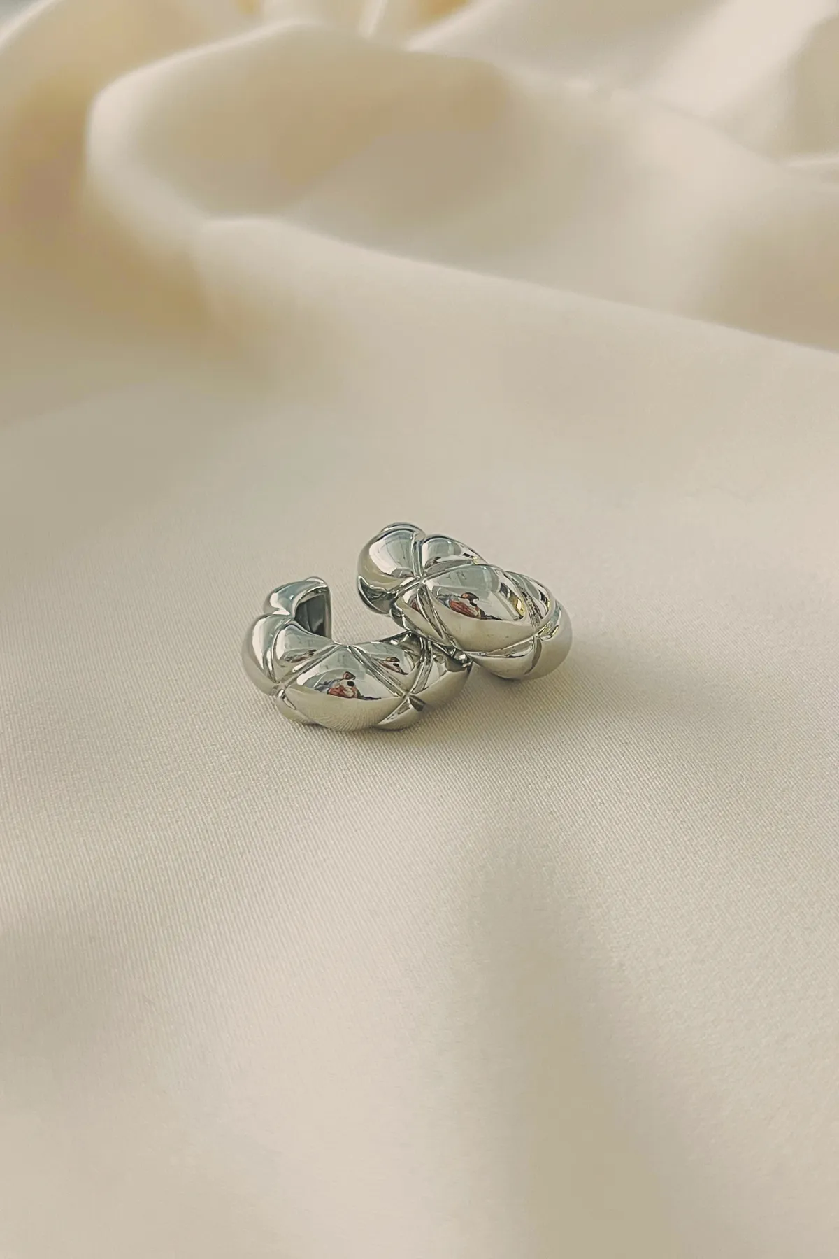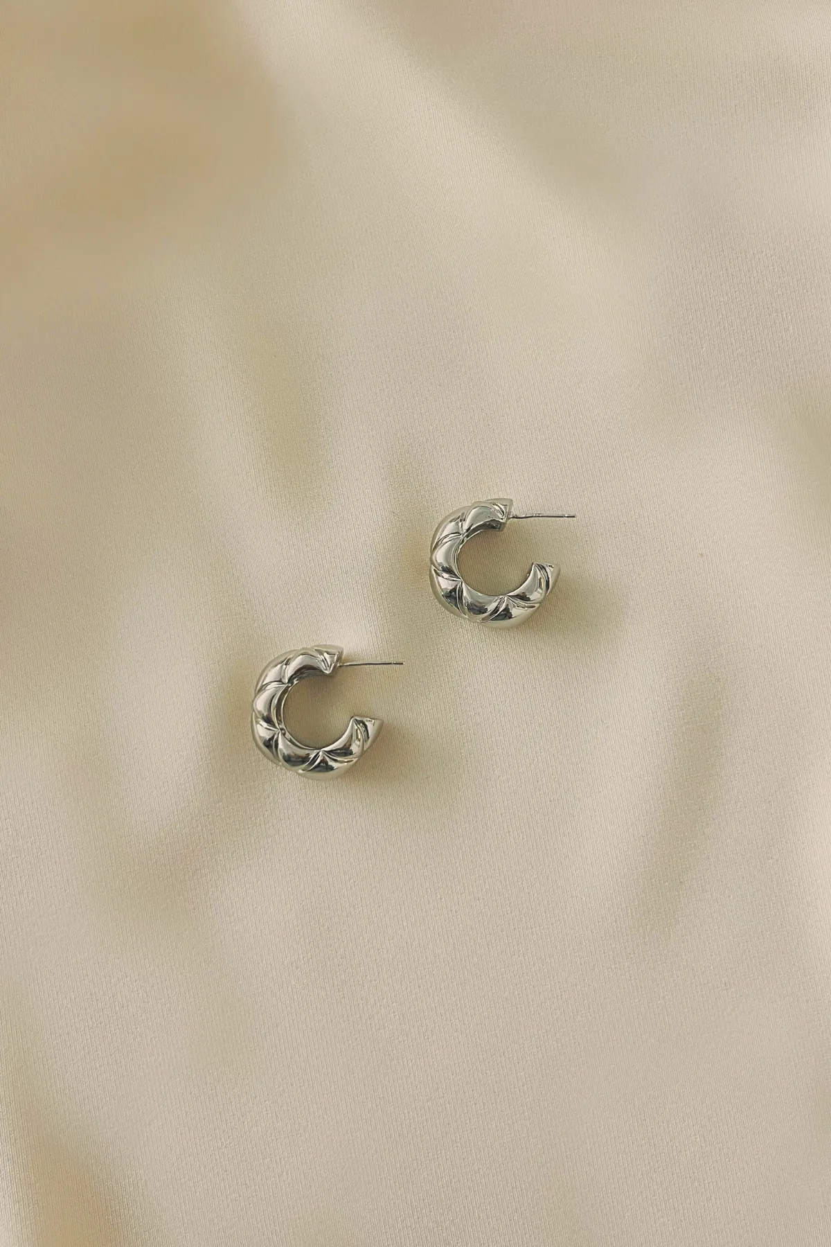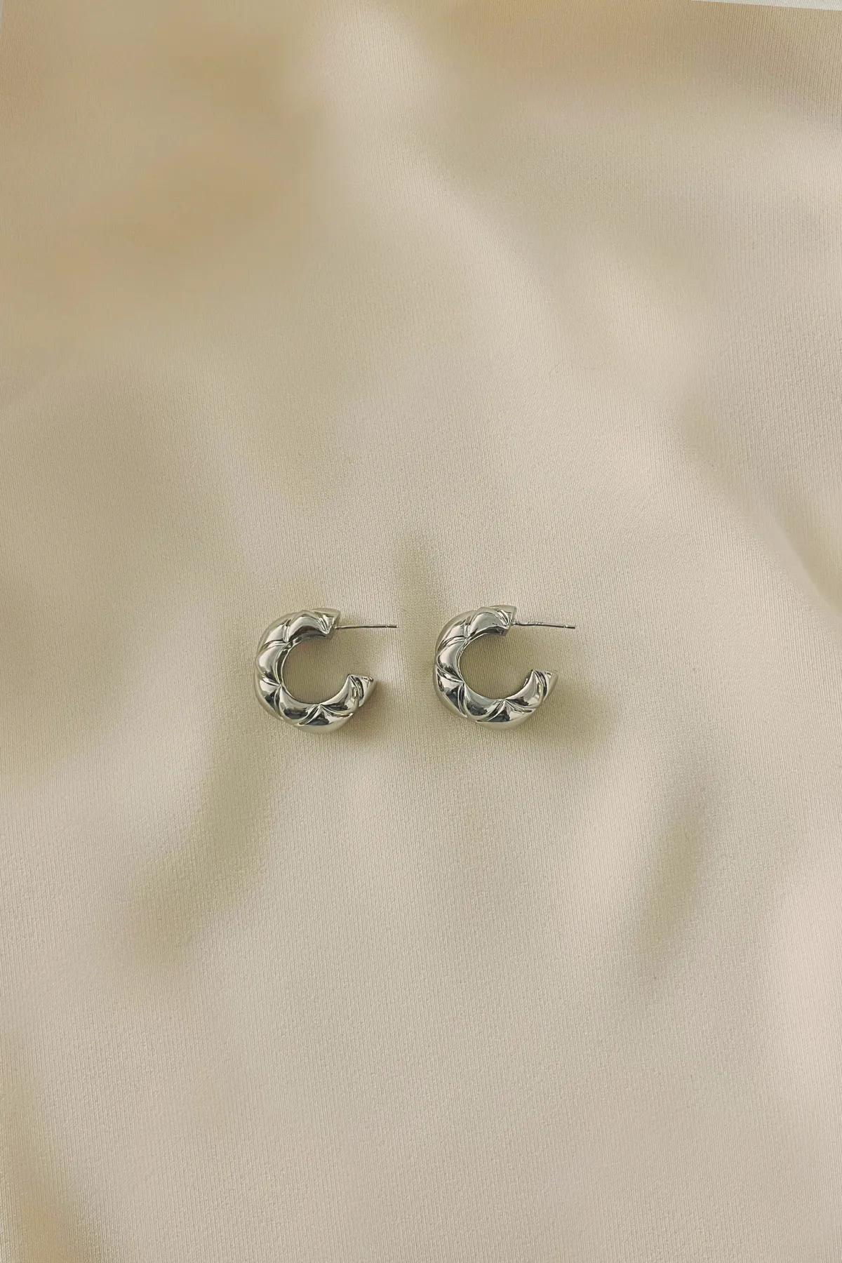 厚銀菱格紋C型耳環