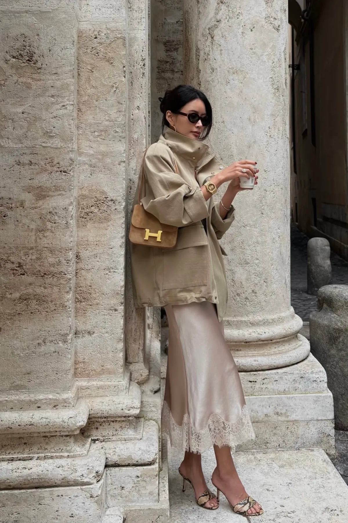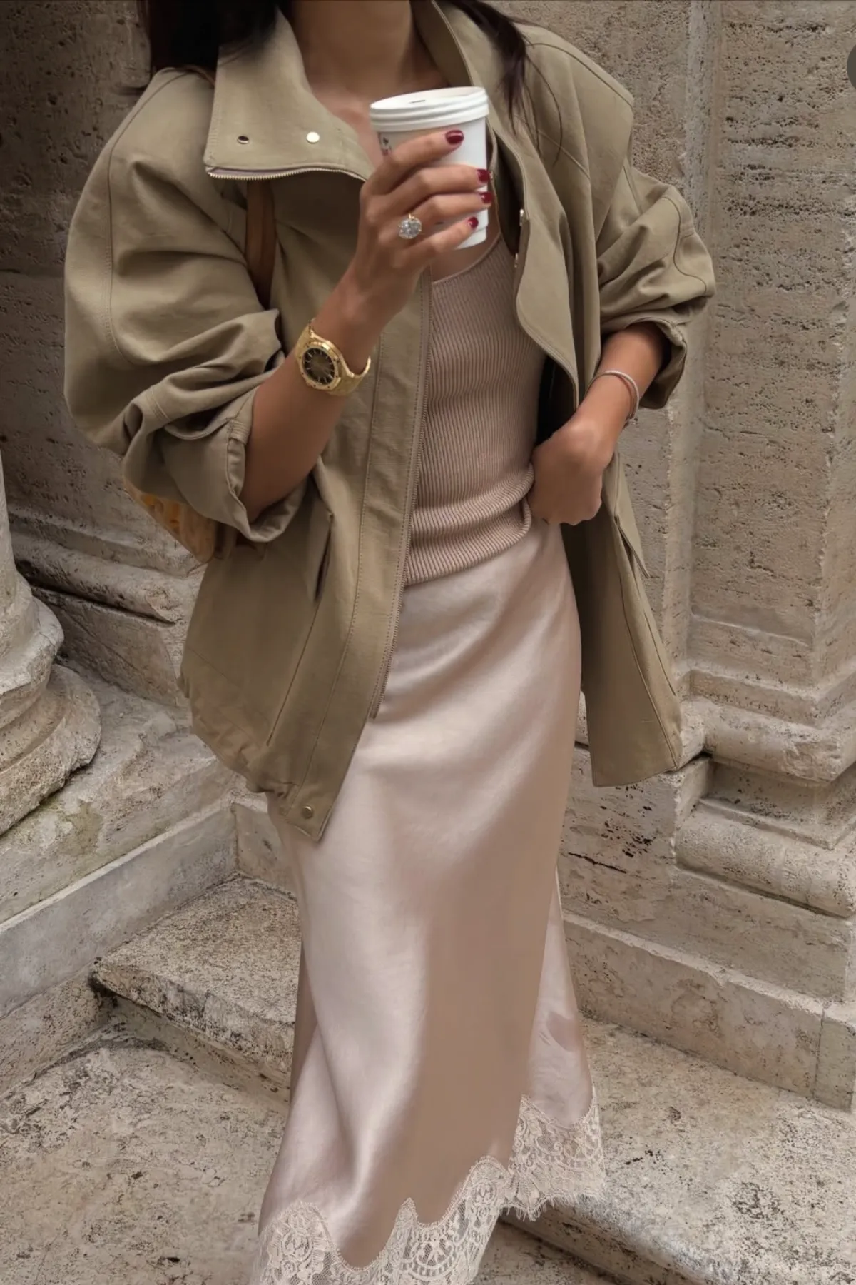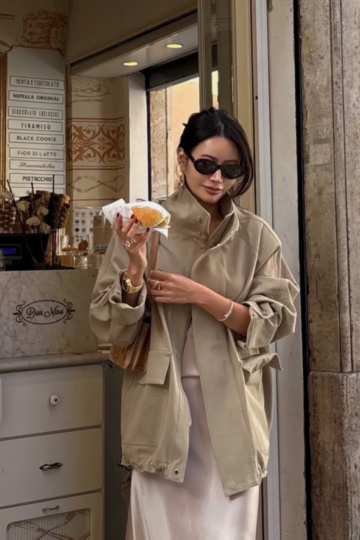 棉質立領雙蓋袋獵裝外套(卡其杏)