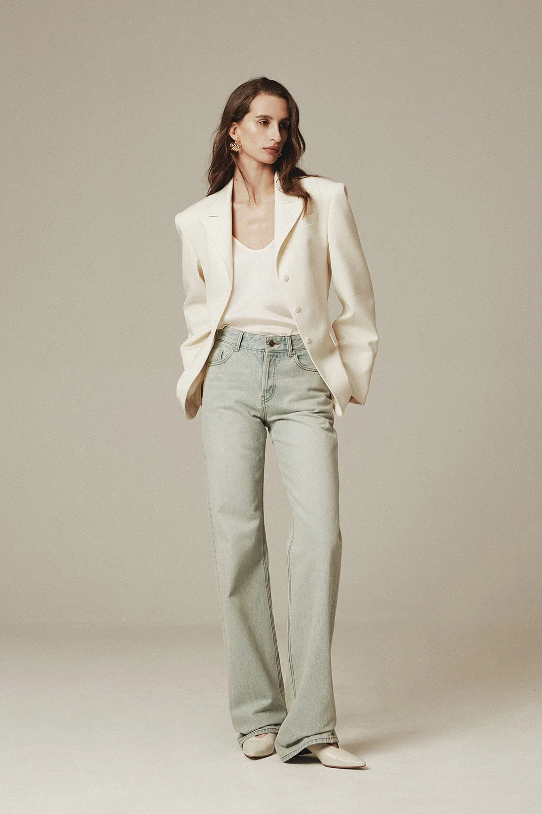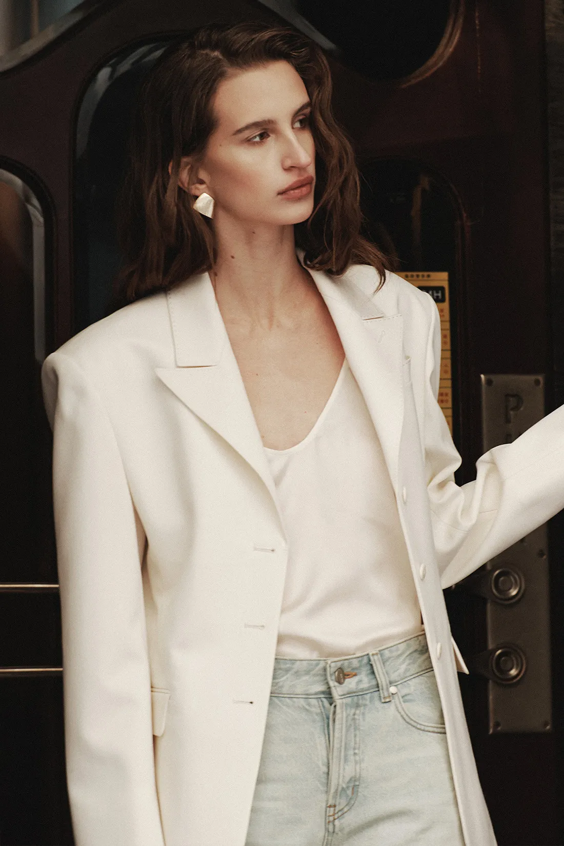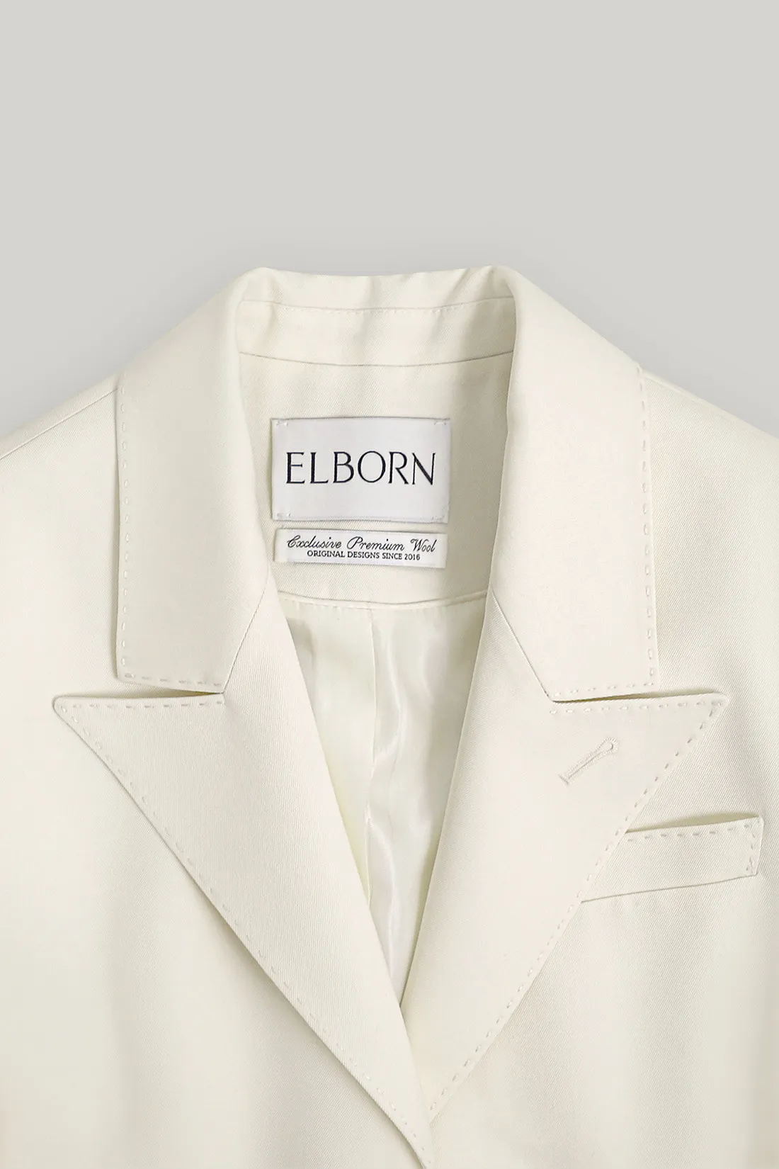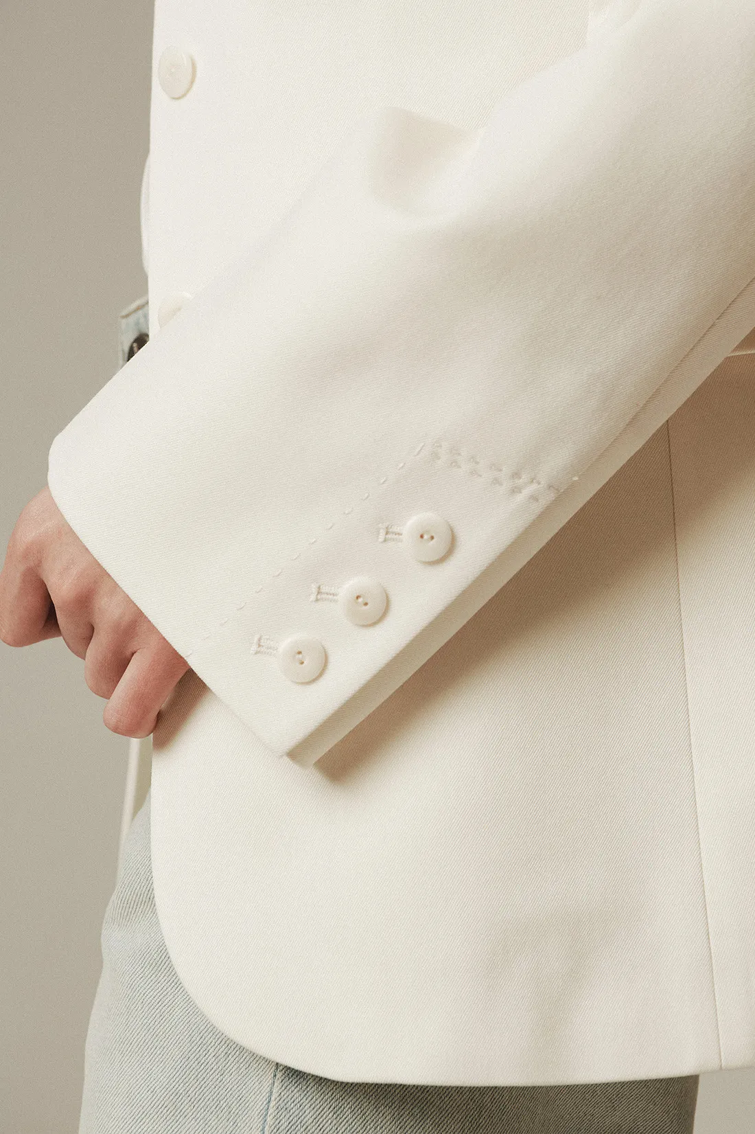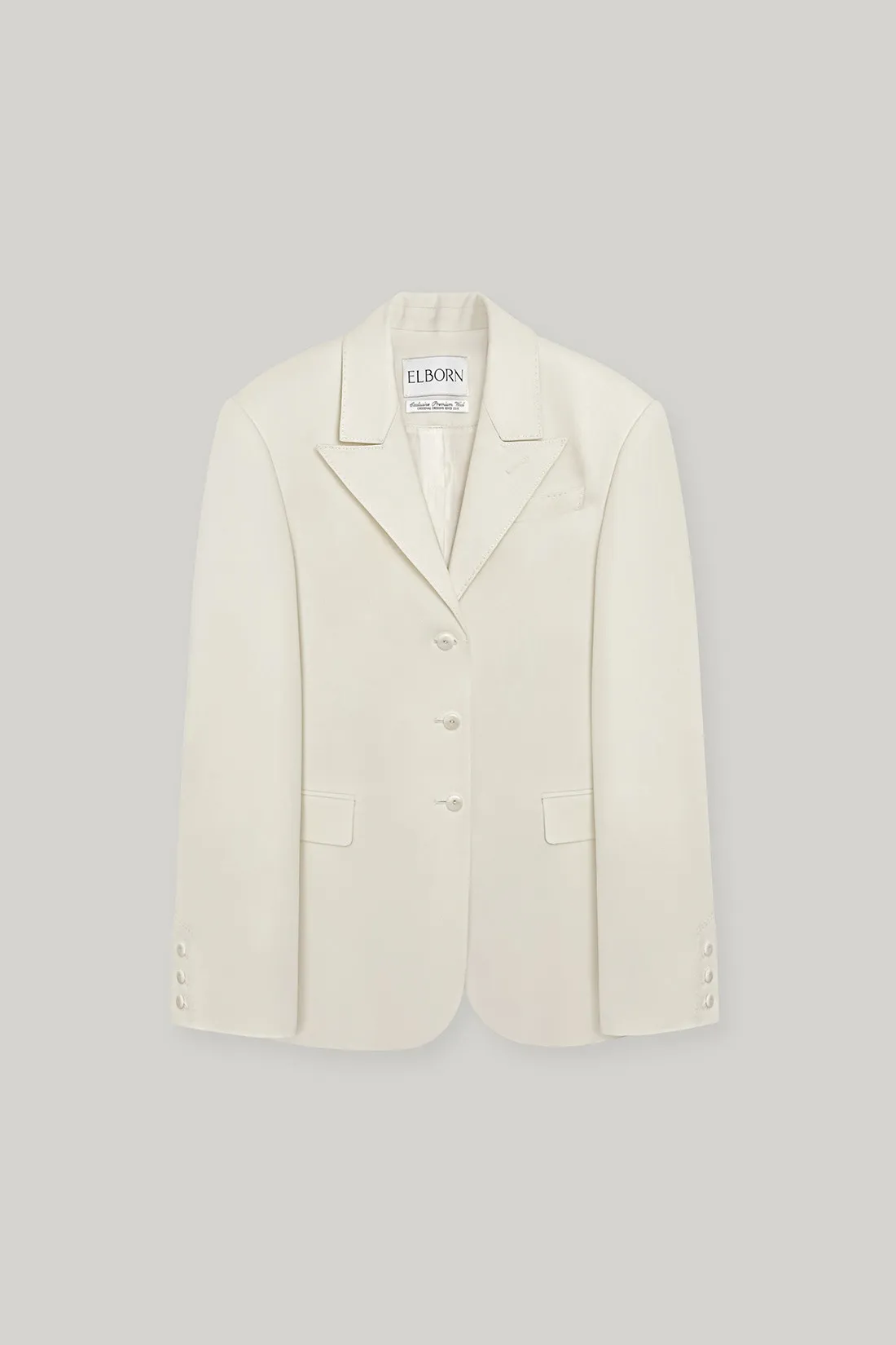 羊毛100%劍領三釦西裝外套(米白)