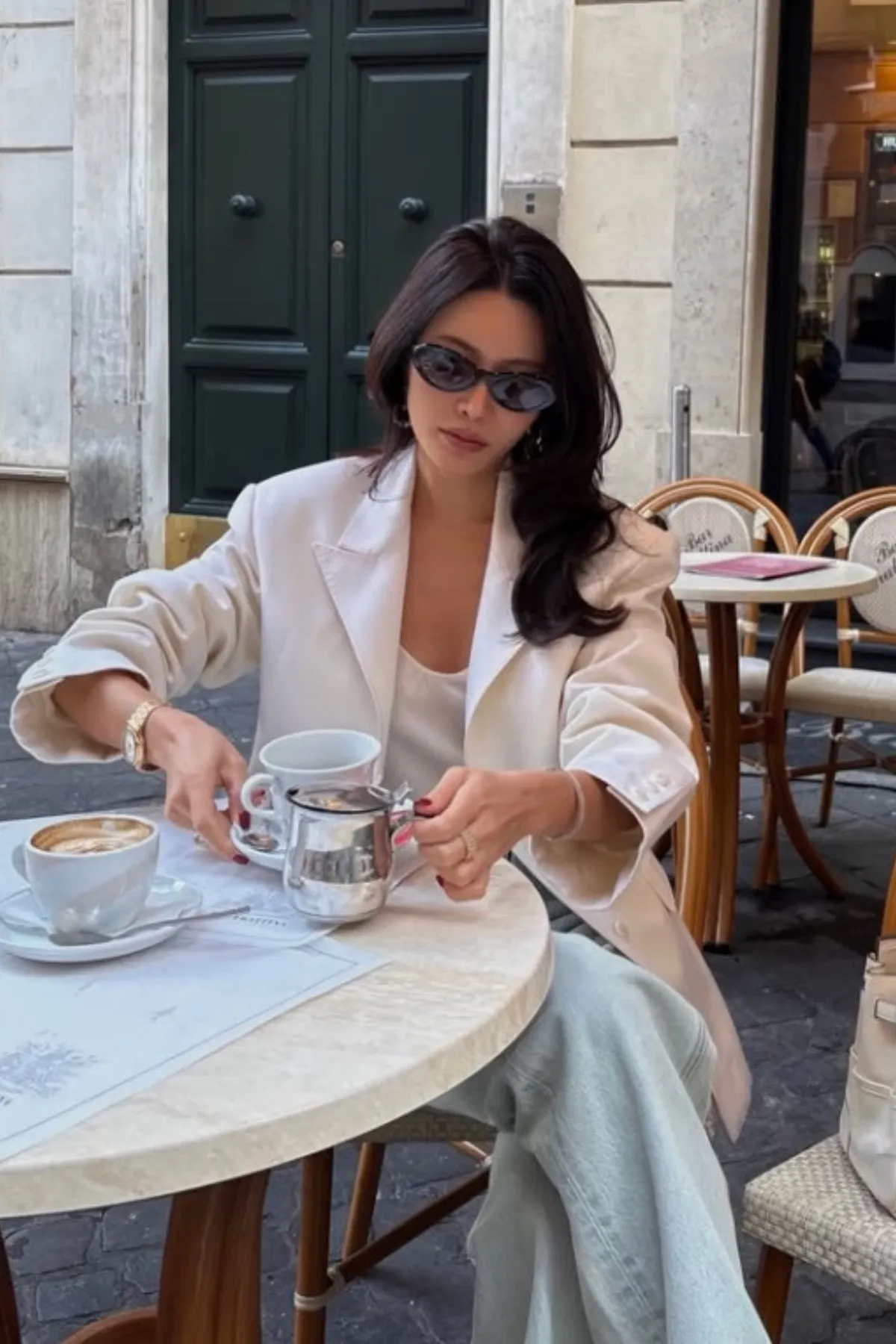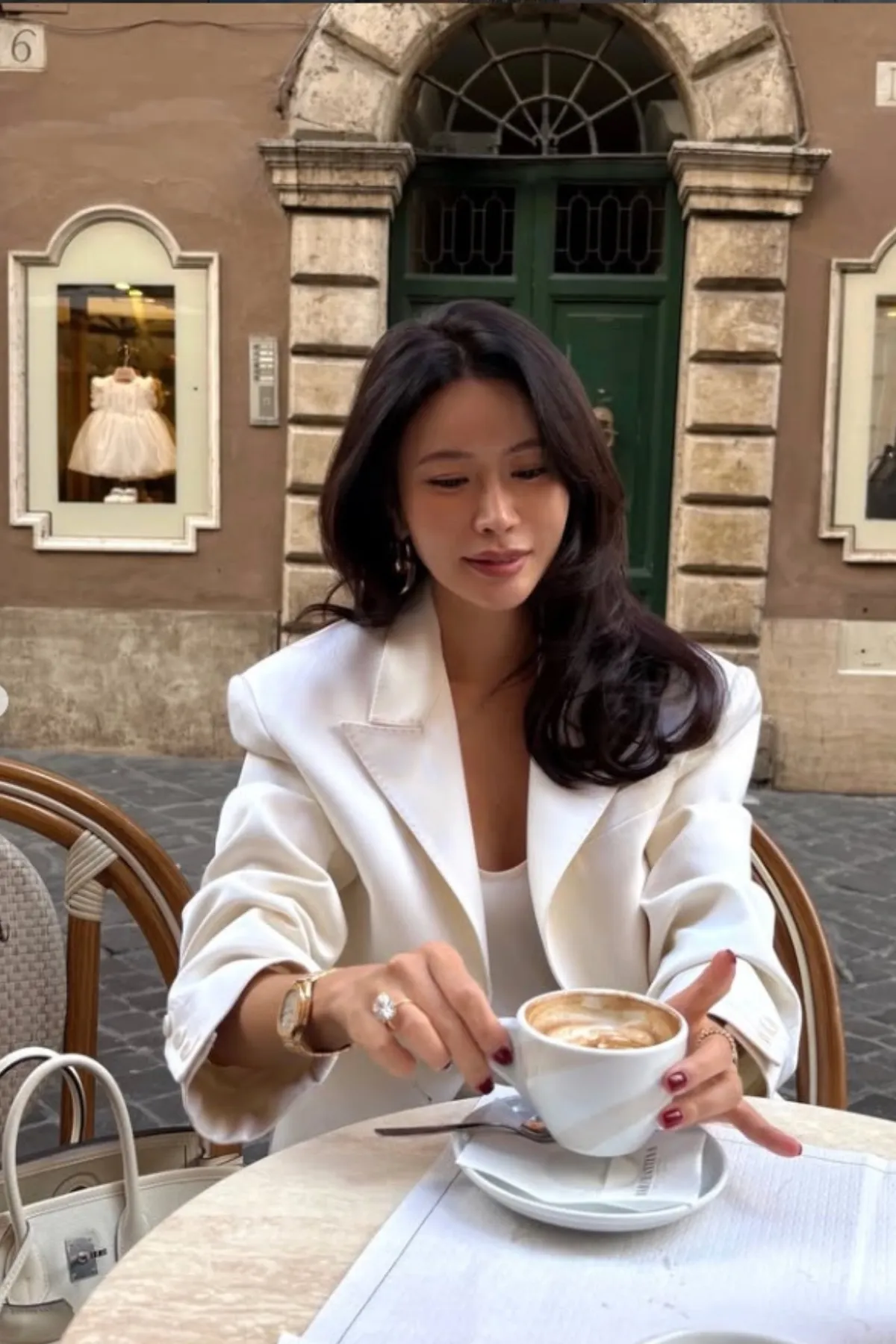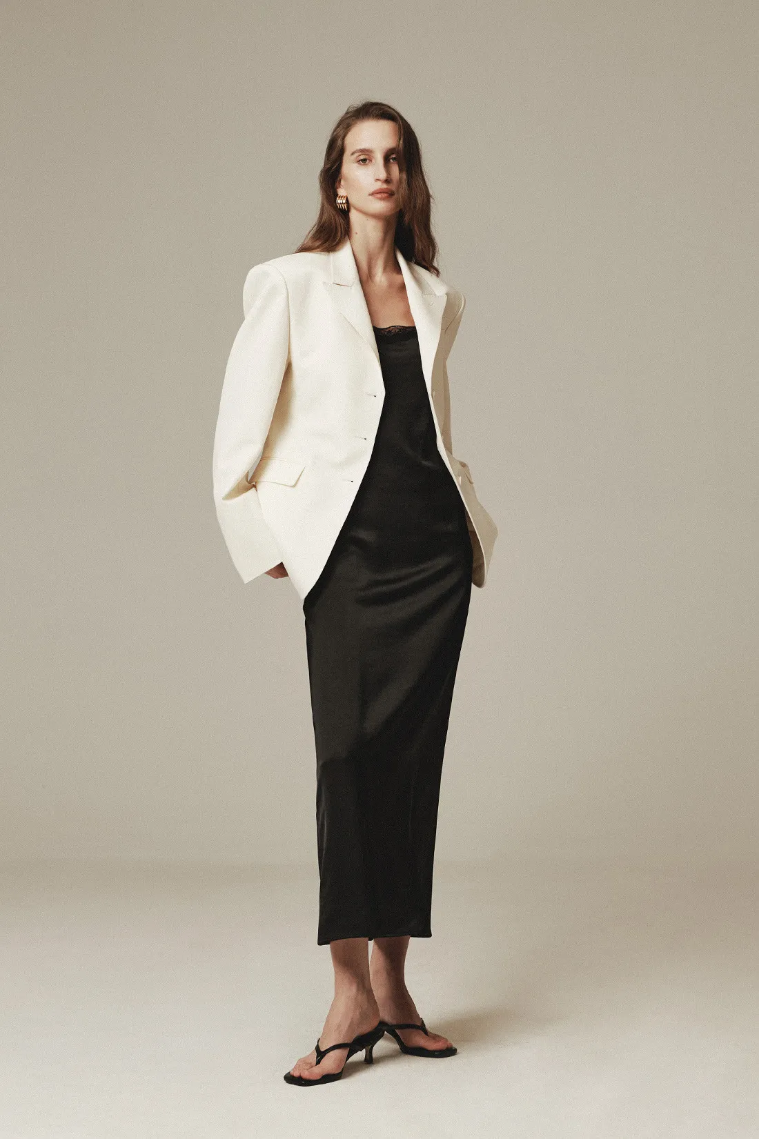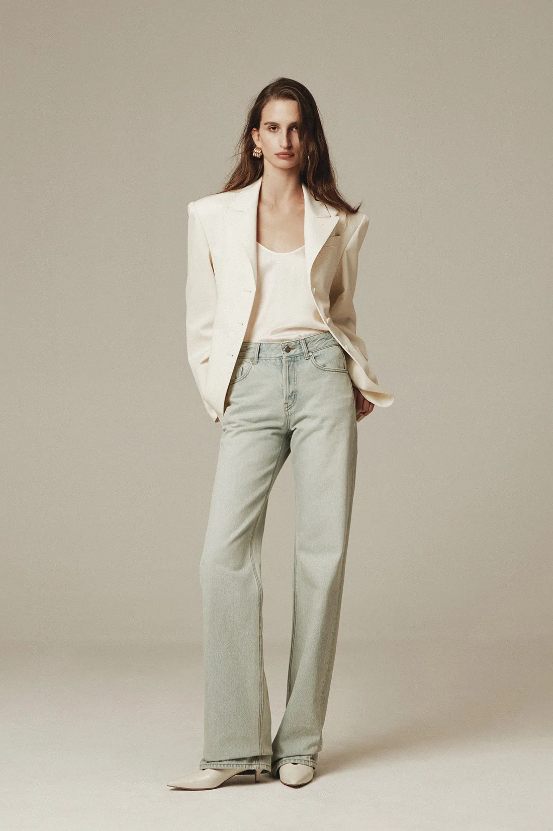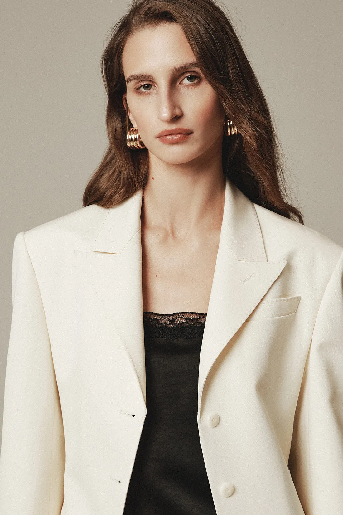 羊毛100%劍領三釦西裝外套(米白)