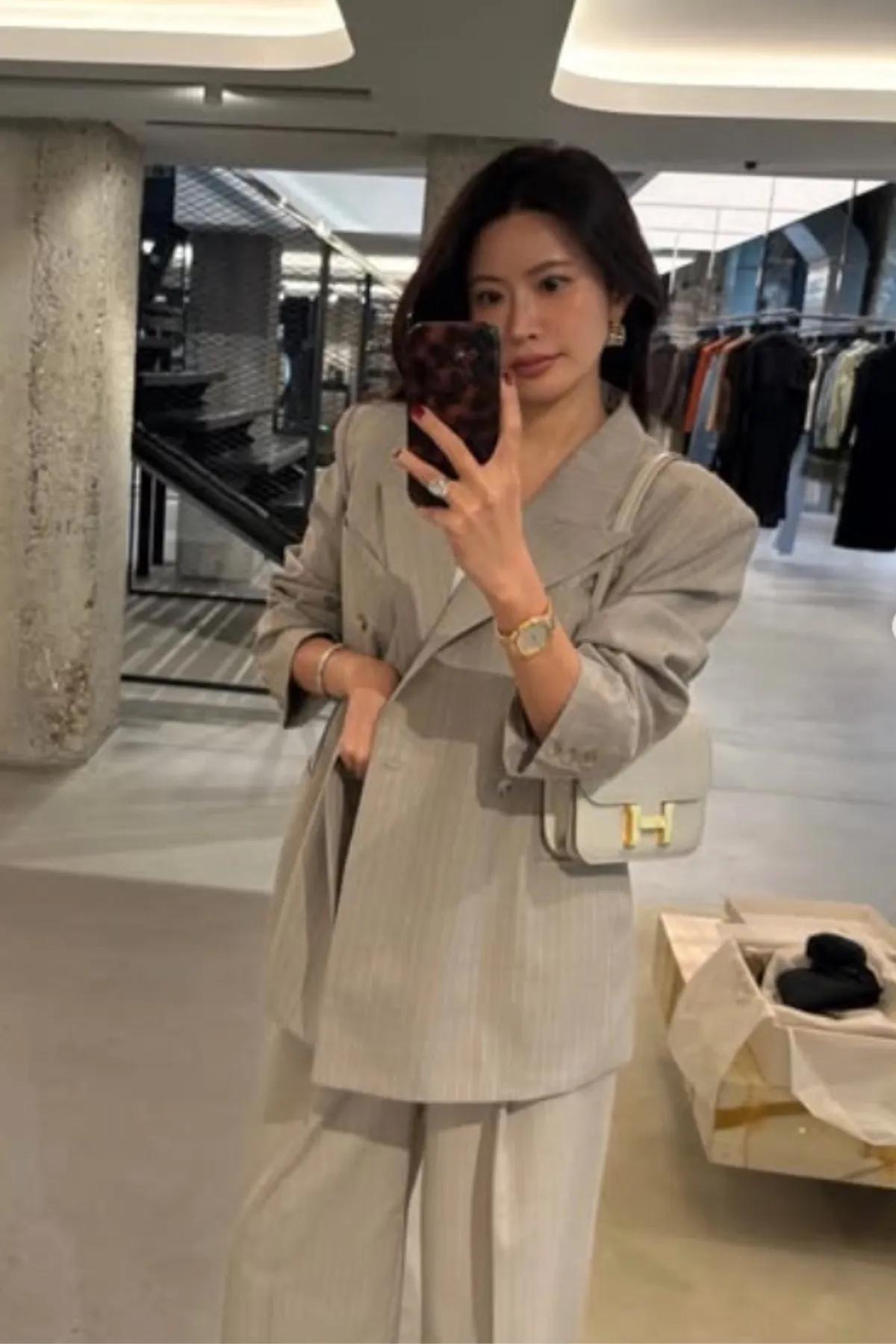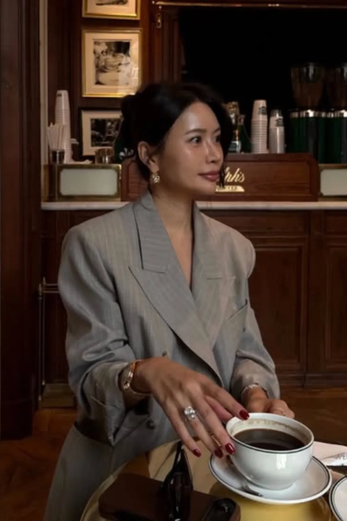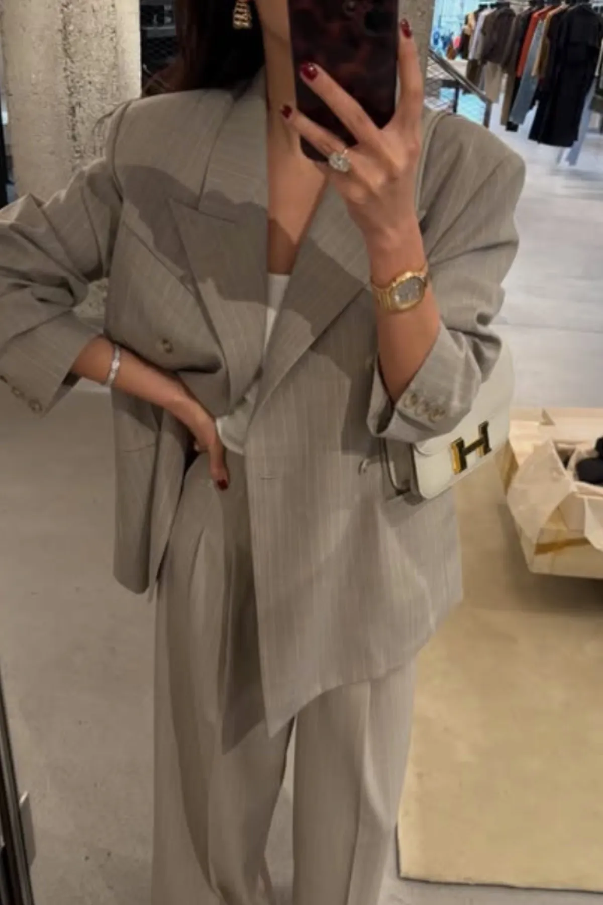 優質羊毛劍領雙排釦西裝外套(條紋杏)
