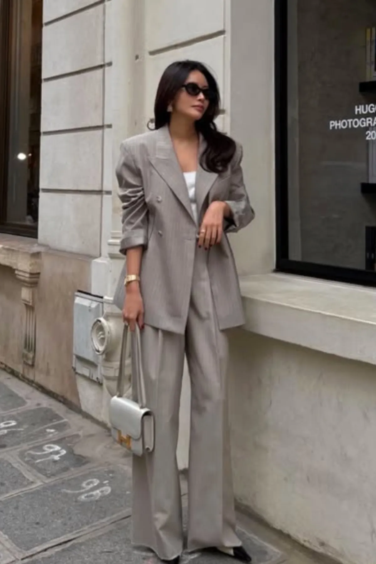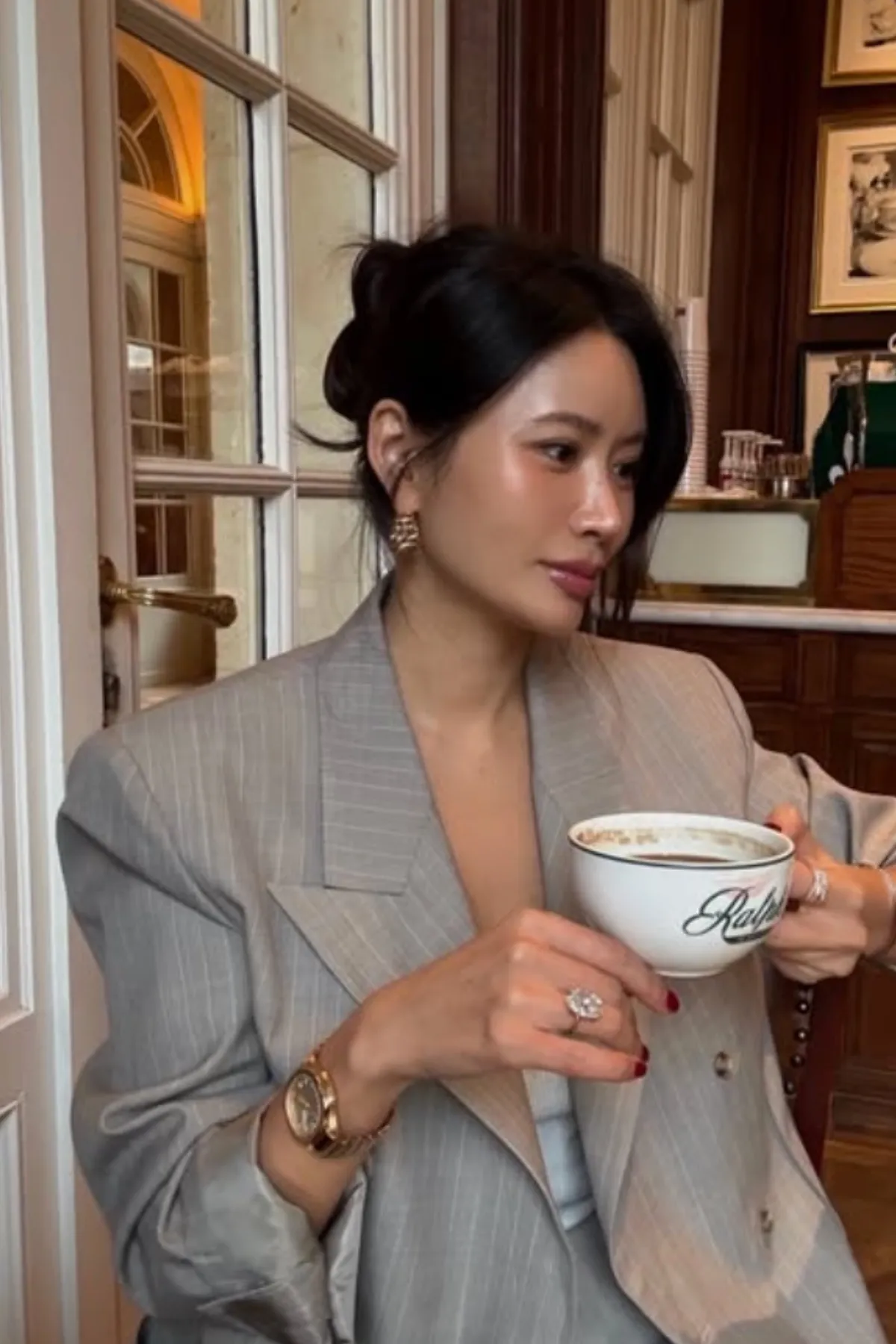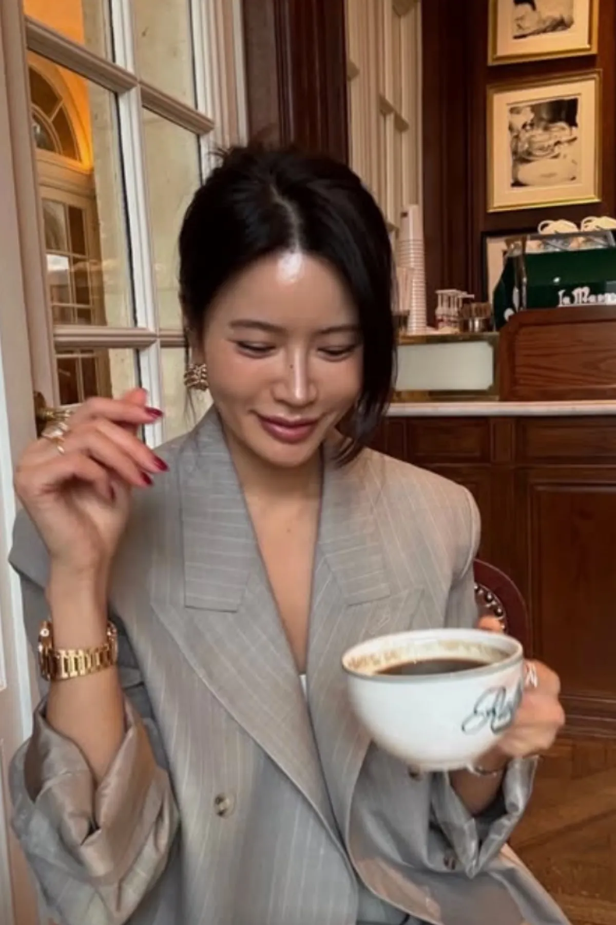 優質羊毛劍領雙排釦西裝外套(條紋杏)