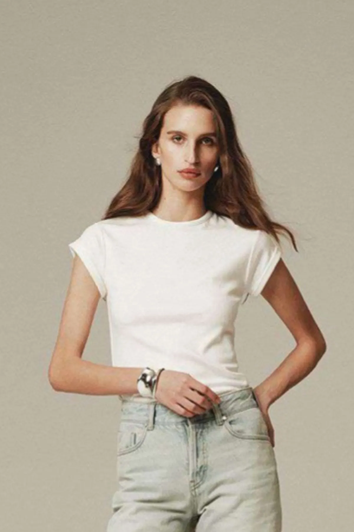 莫代爾棉褶袖T(白)