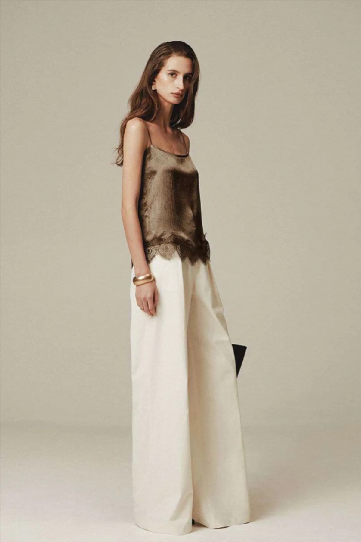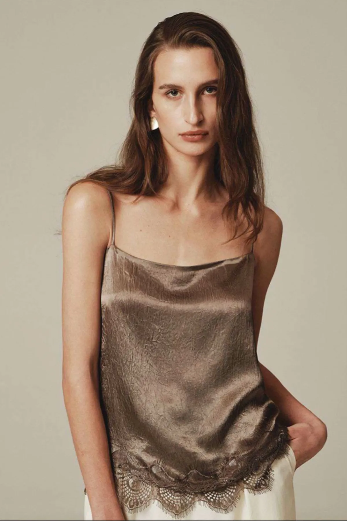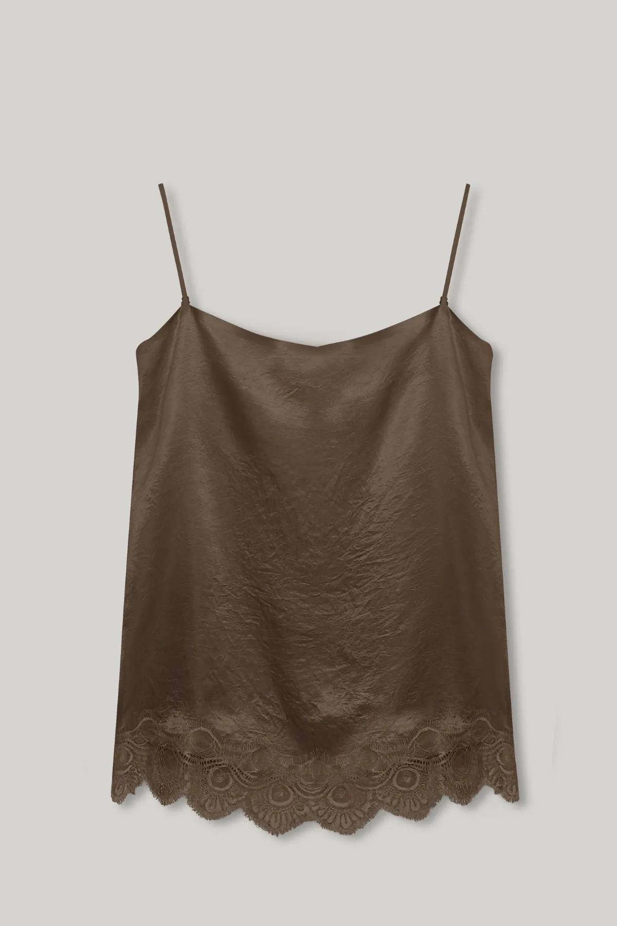 光澤蕾絲調節細肩背心(摩卡)