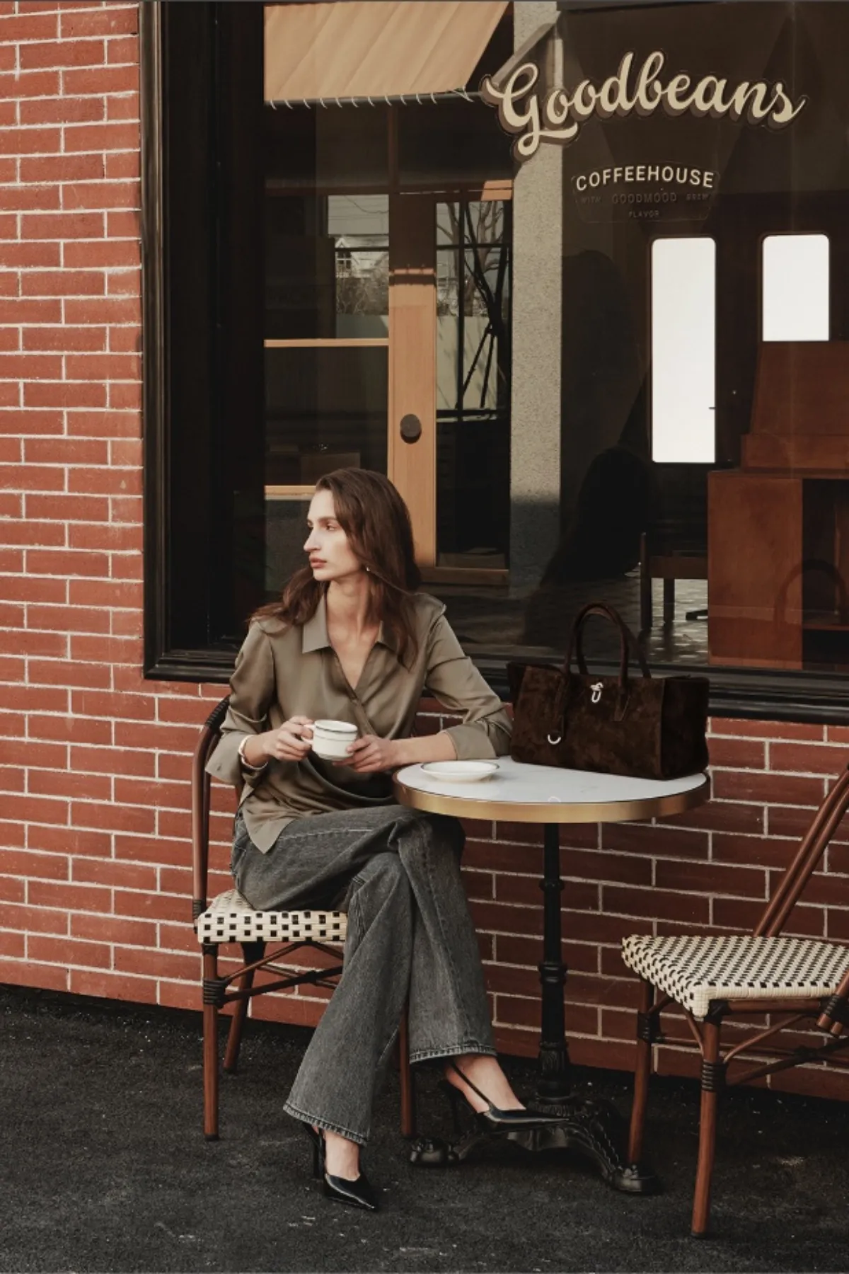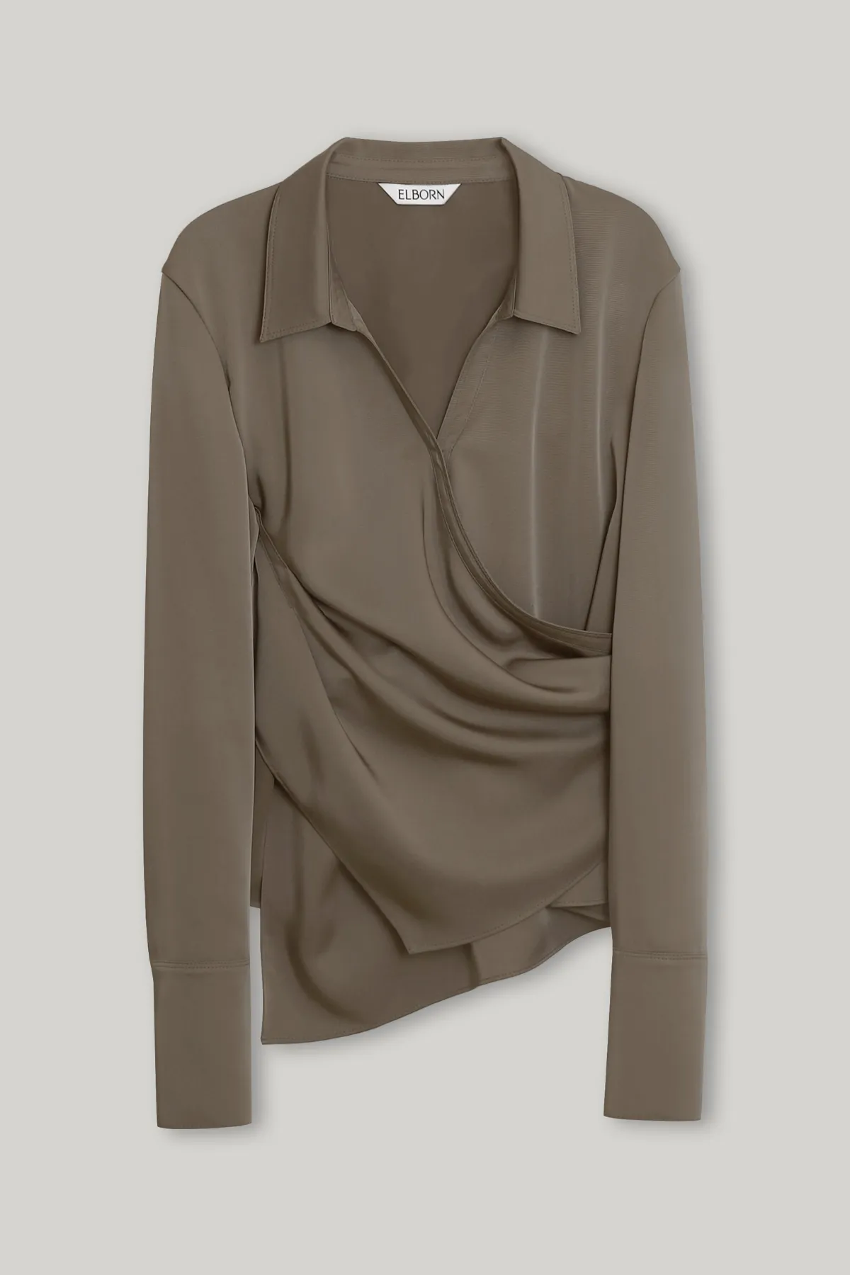 柔滑垂墜曲線翻領上衣(灰)