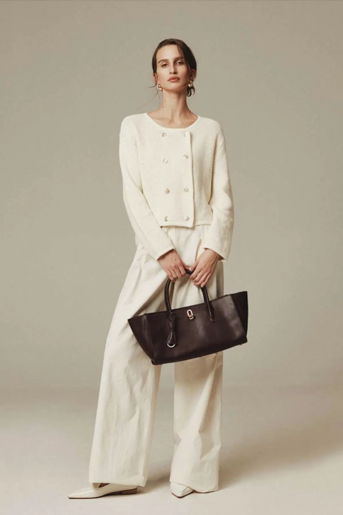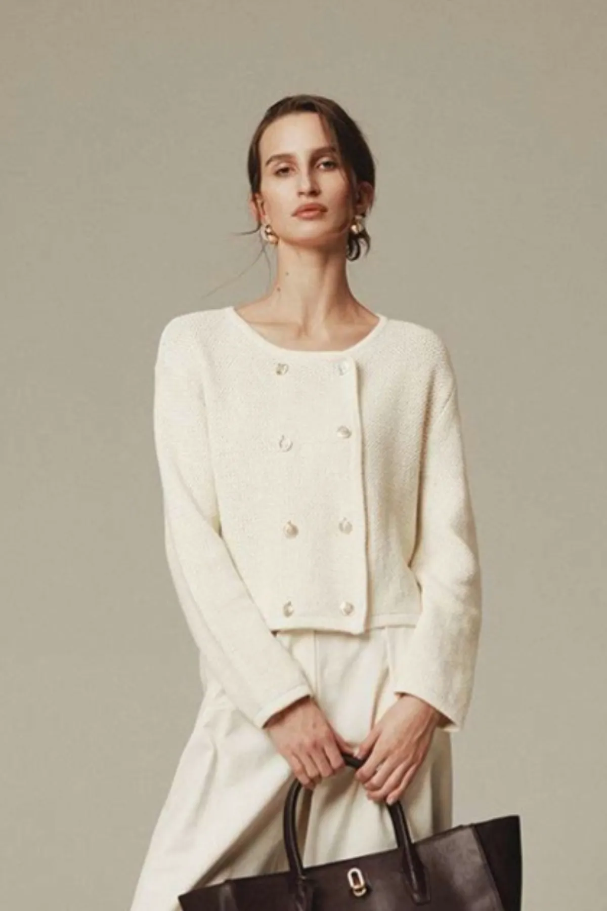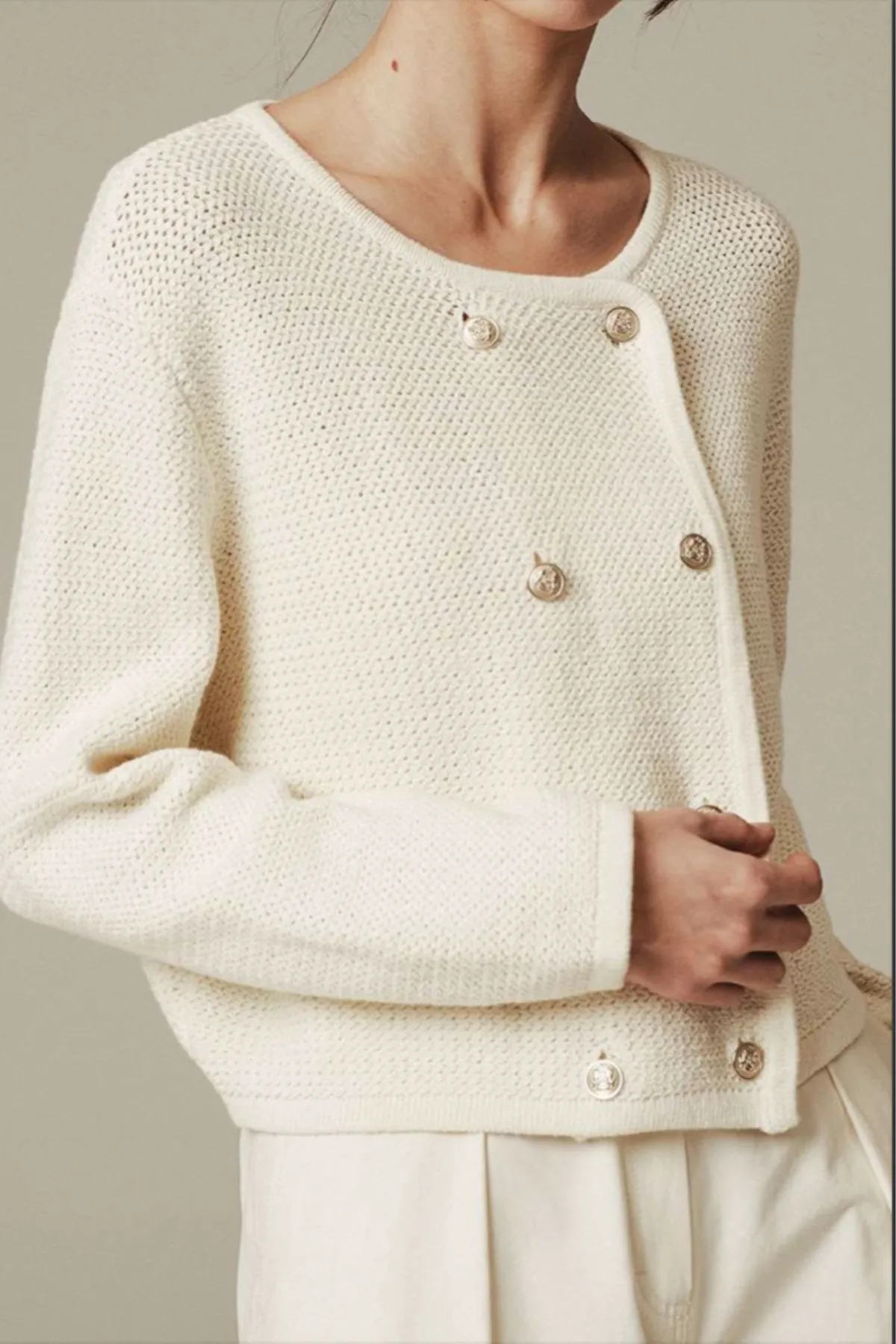 純棉雙排金釦針織外套(米白)