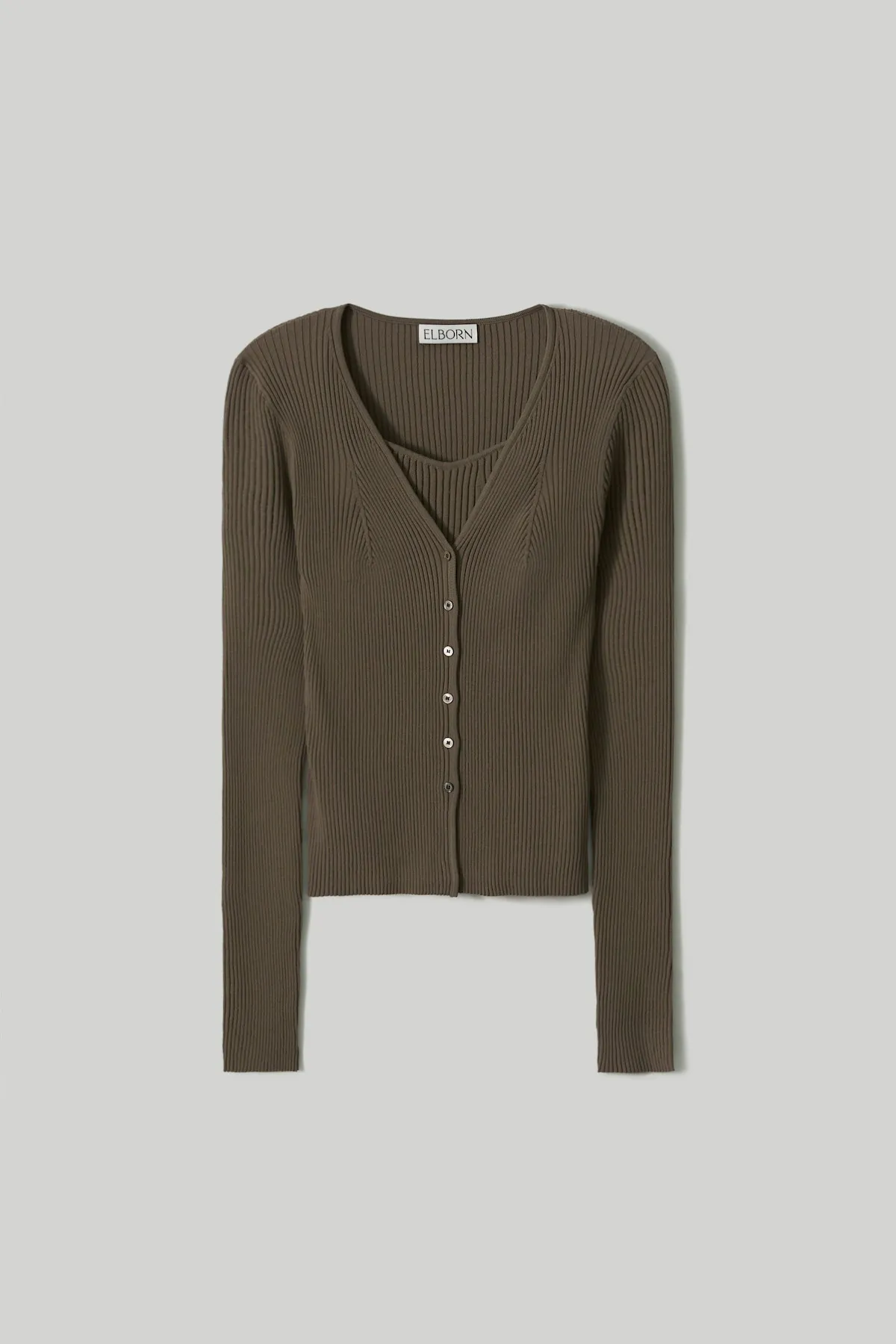 豎織紋二件組(背心+排釦衫)(摩卡)