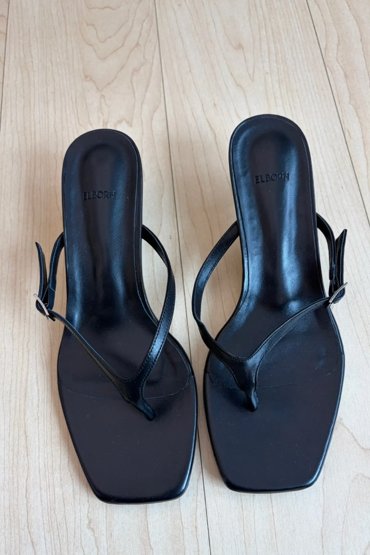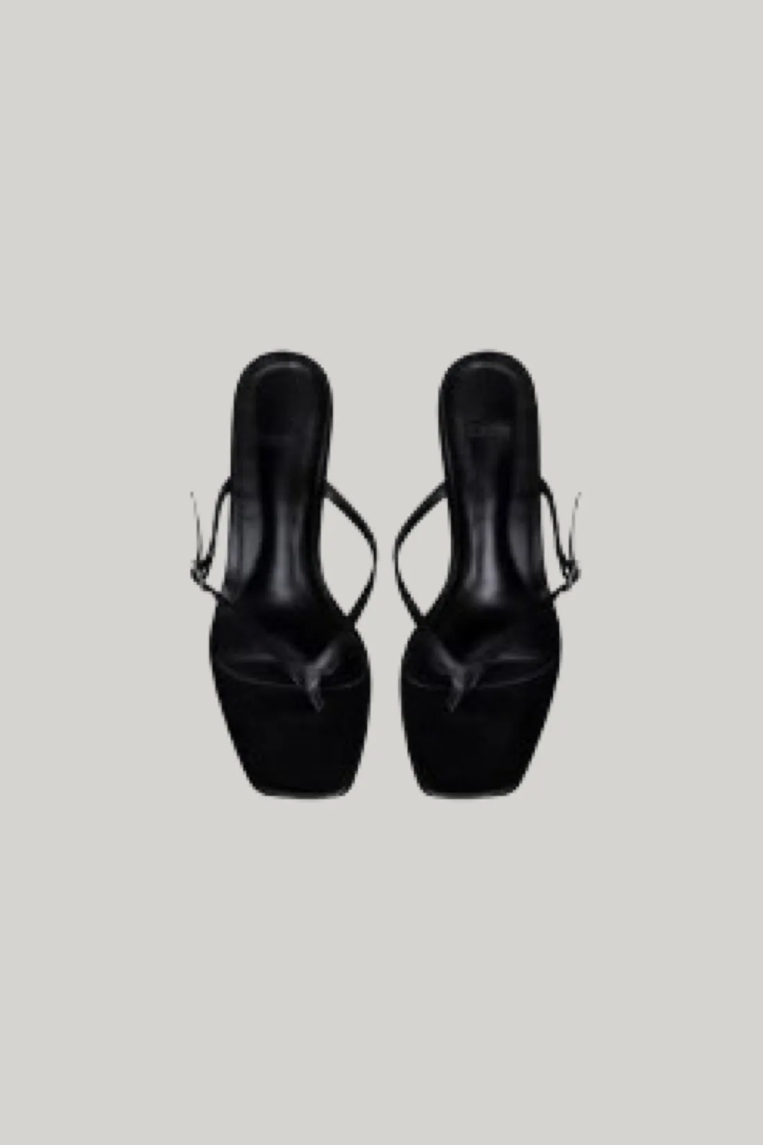 義大利牛皮Y字帶跟鞋5cm(黑)