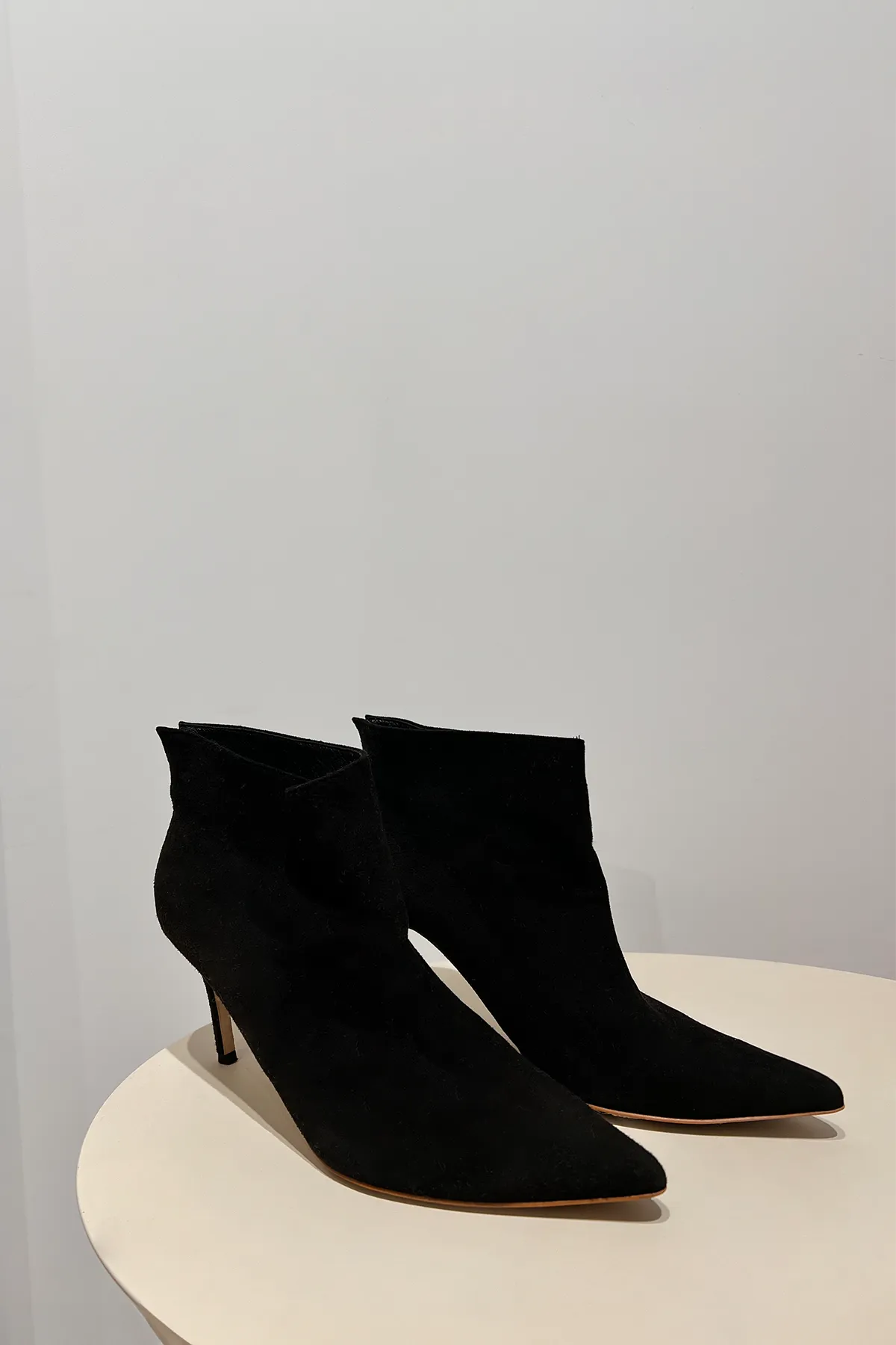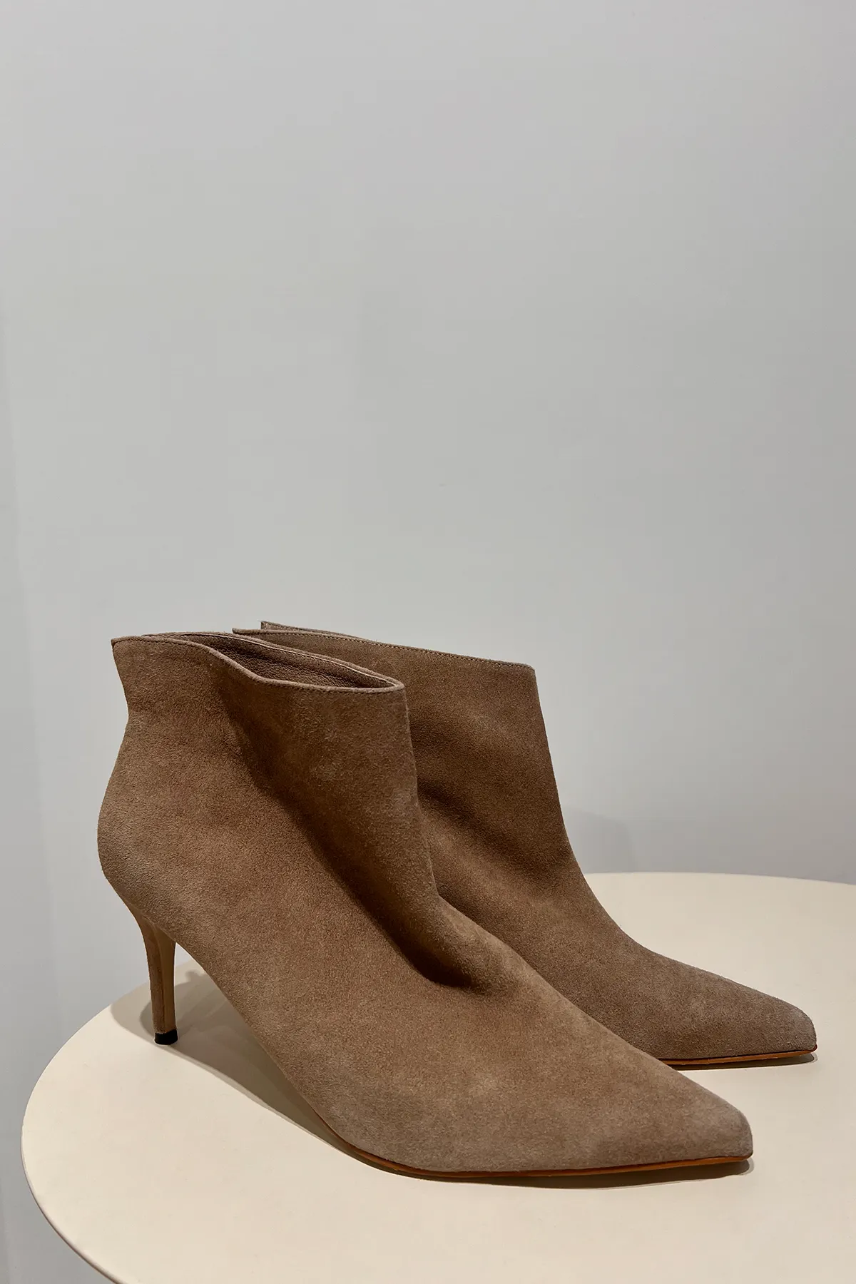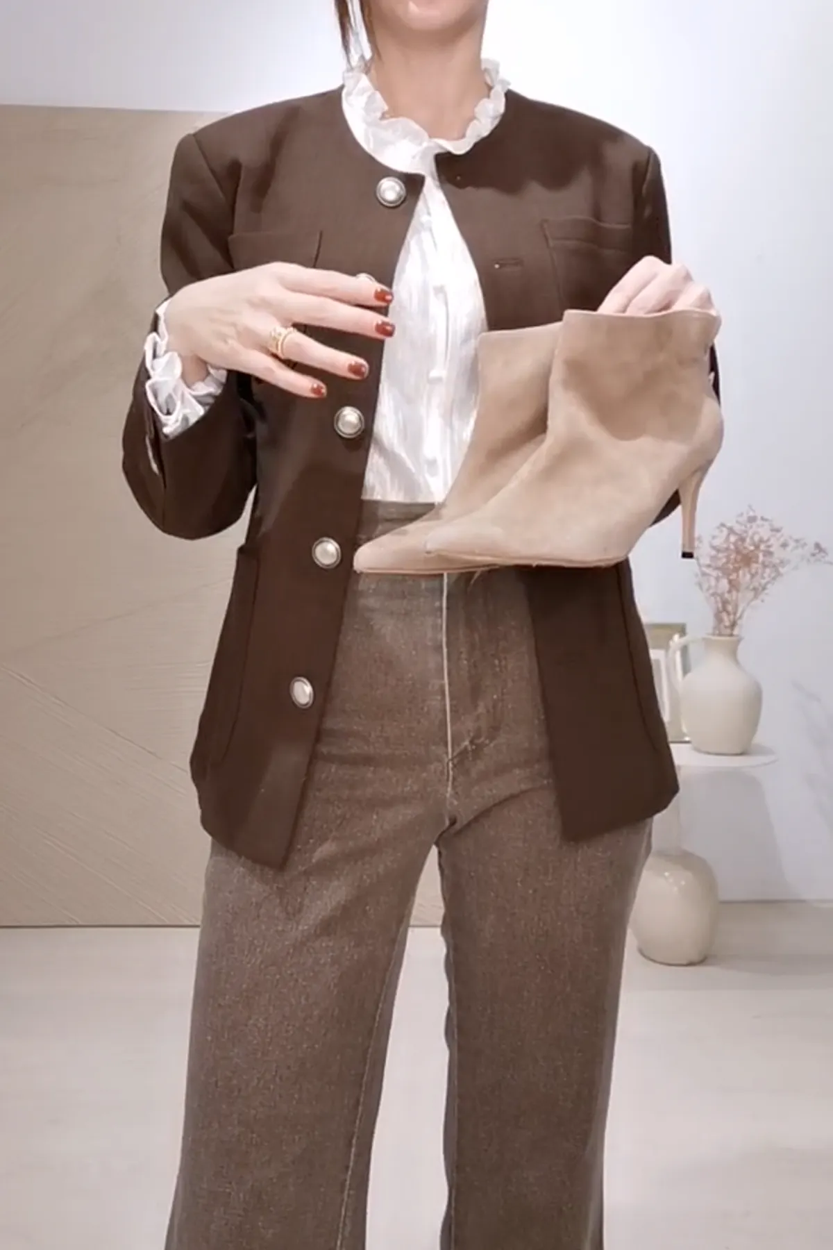 真皮尖頭麂皮後V踝手工鞋(7CM)