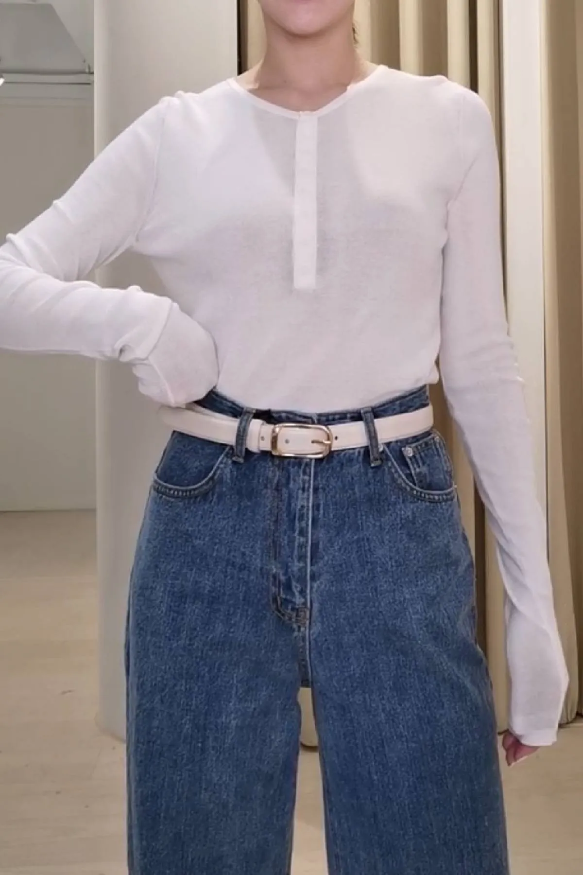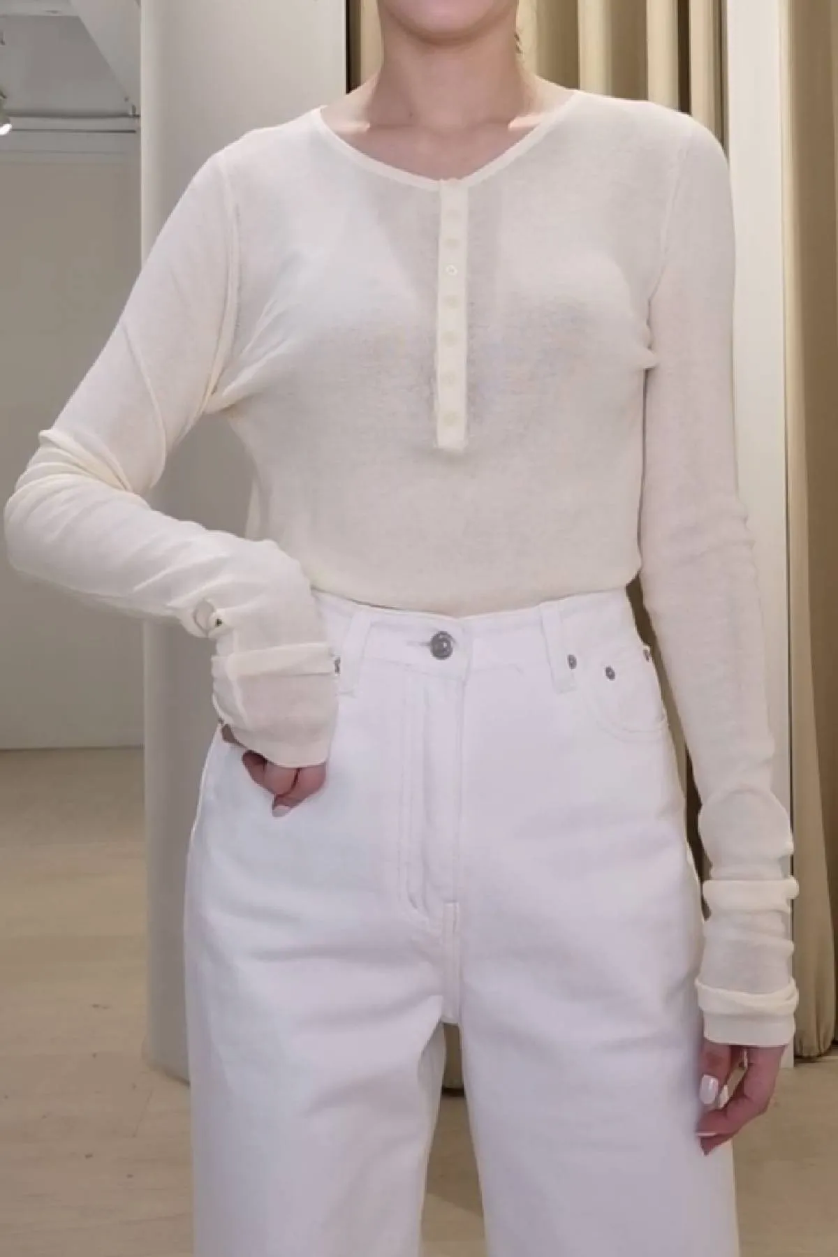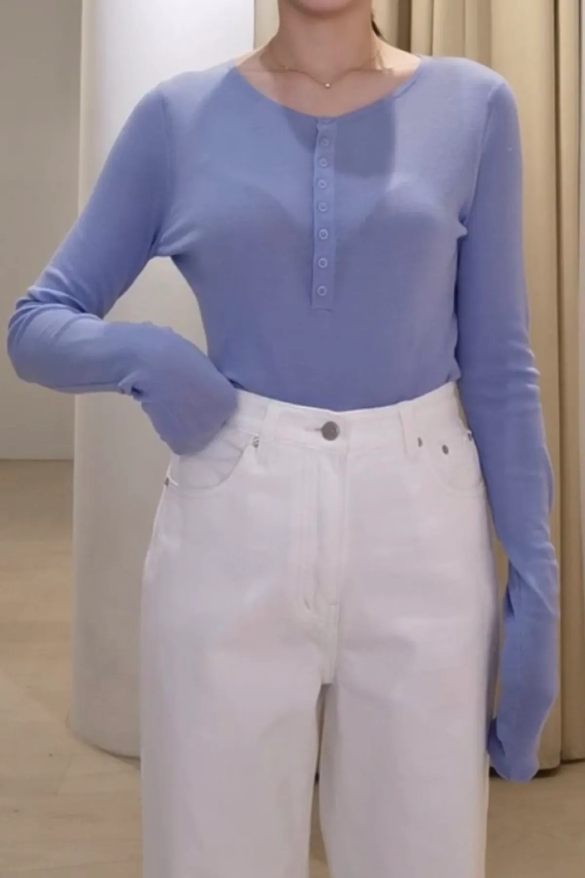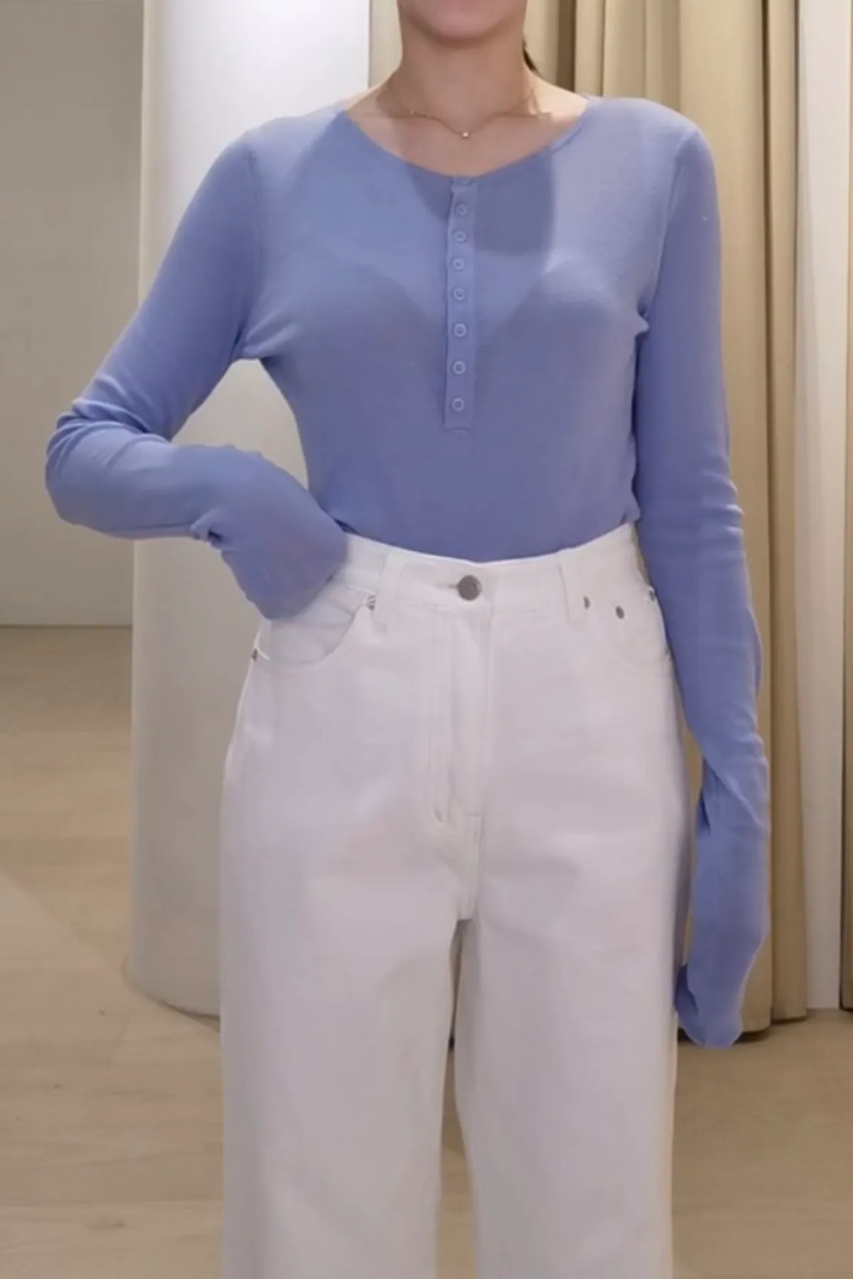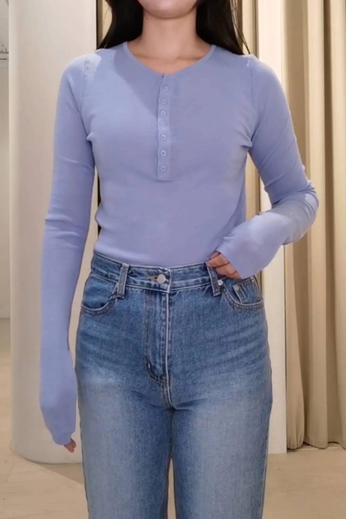 棉質圓領半排釦上衣