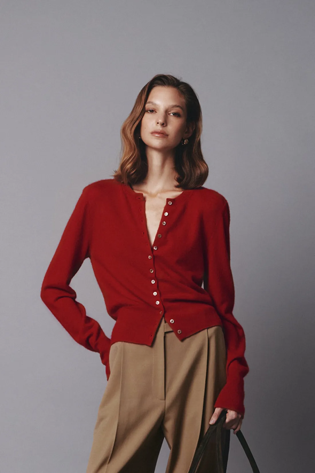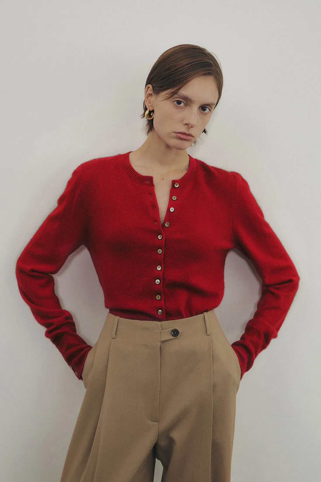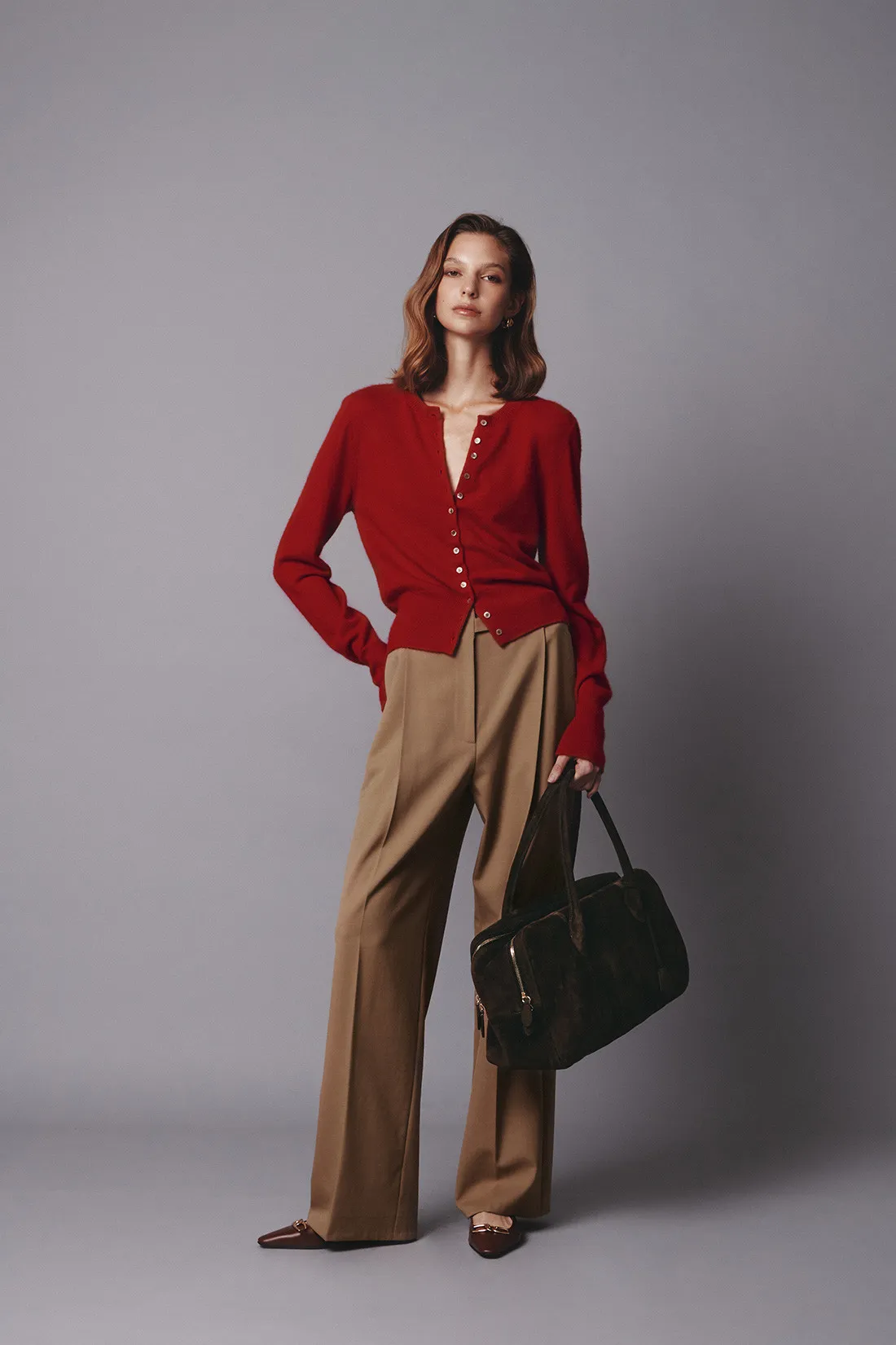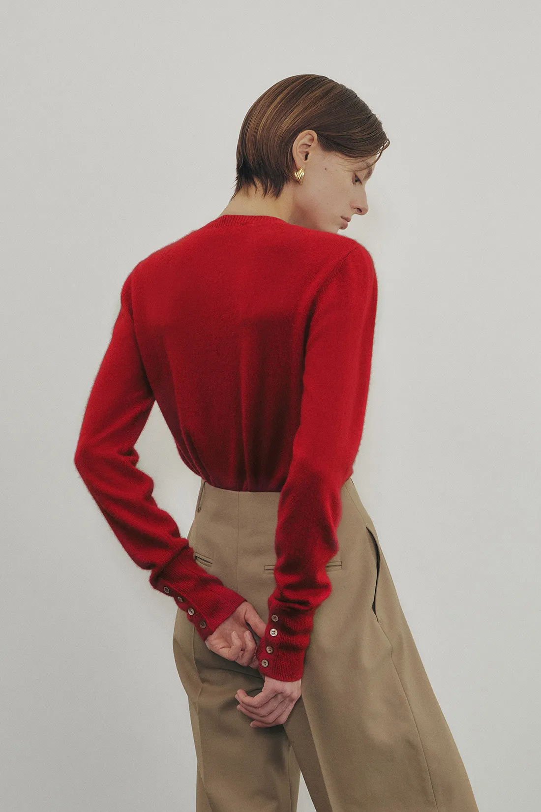 義大利羊絨絲排釦衫