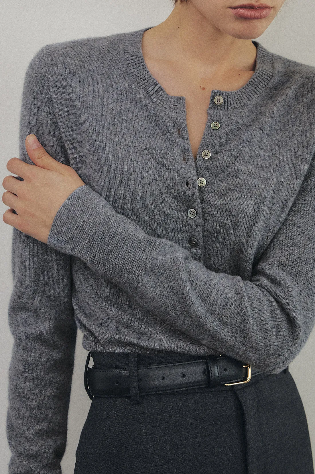 義大利羊絨絲排釦衫