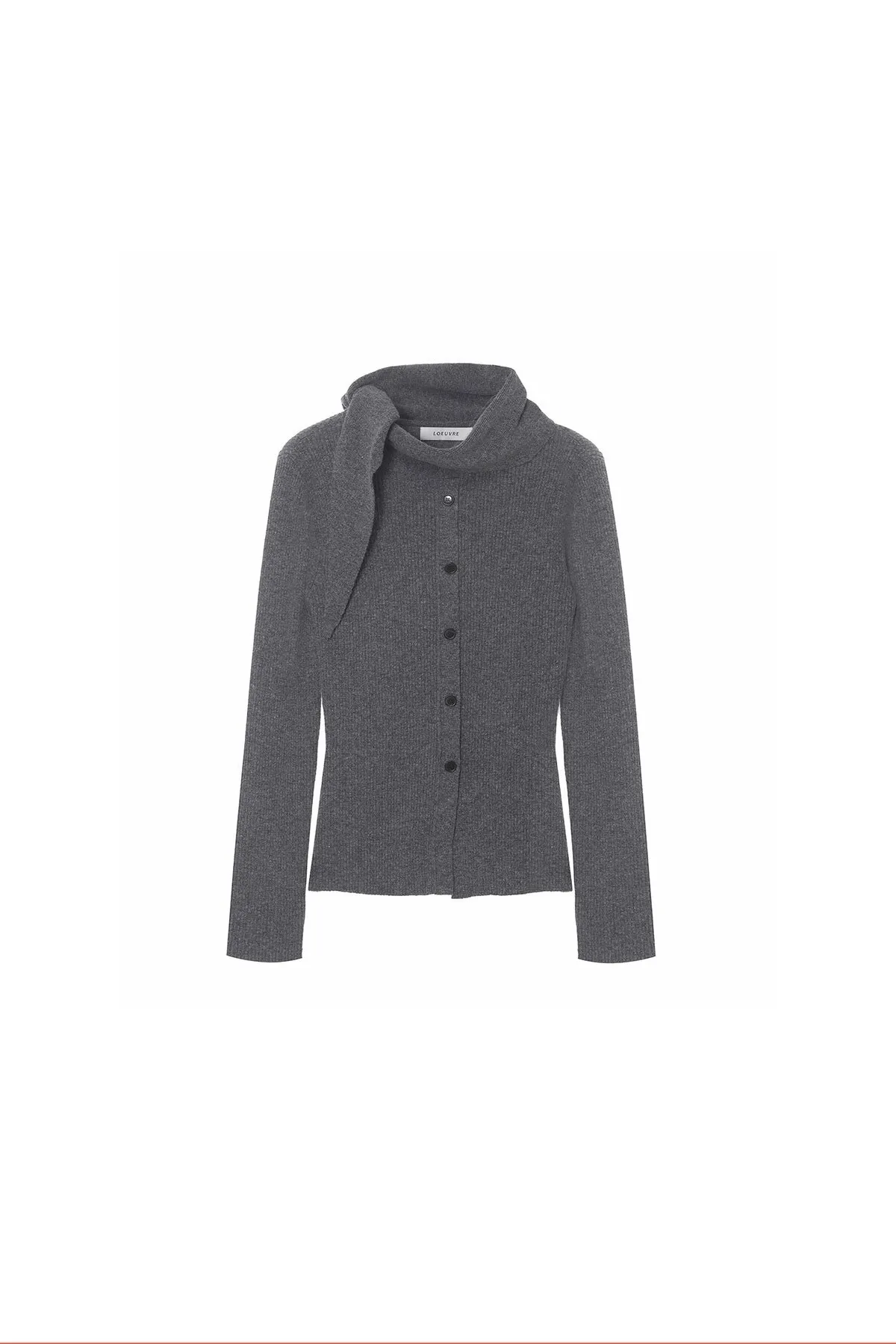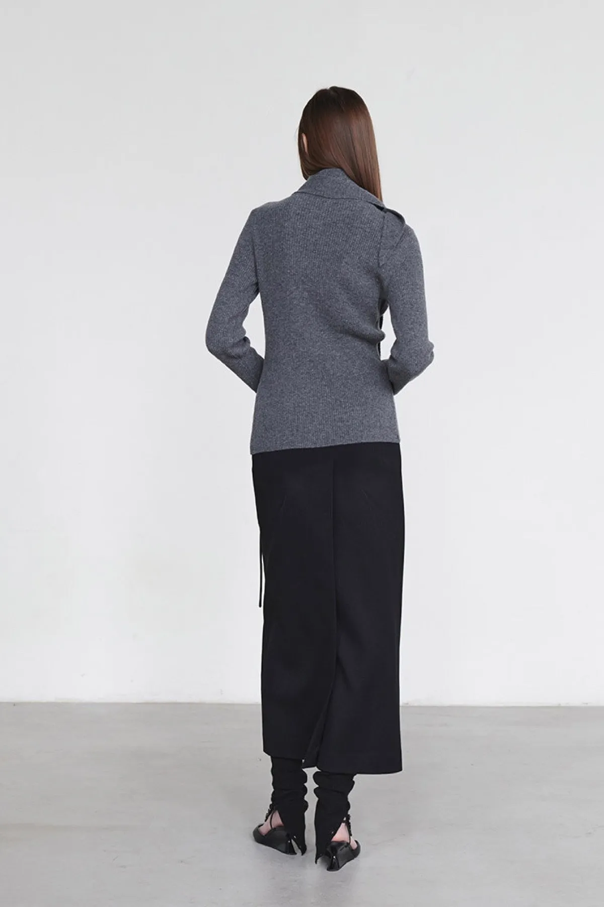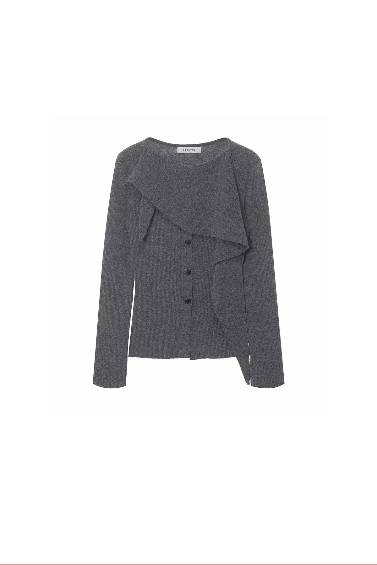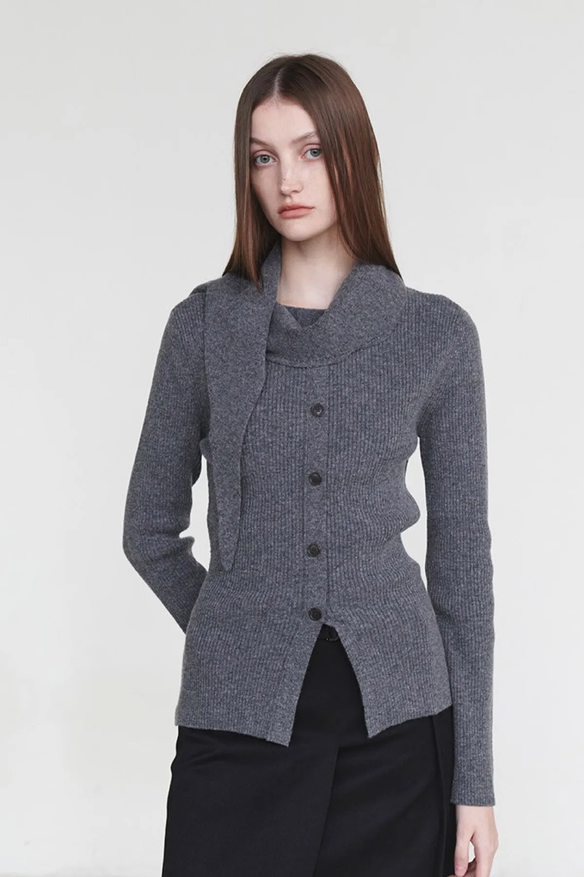 羊毛領圍設計排釦羅紋上衣(灰)