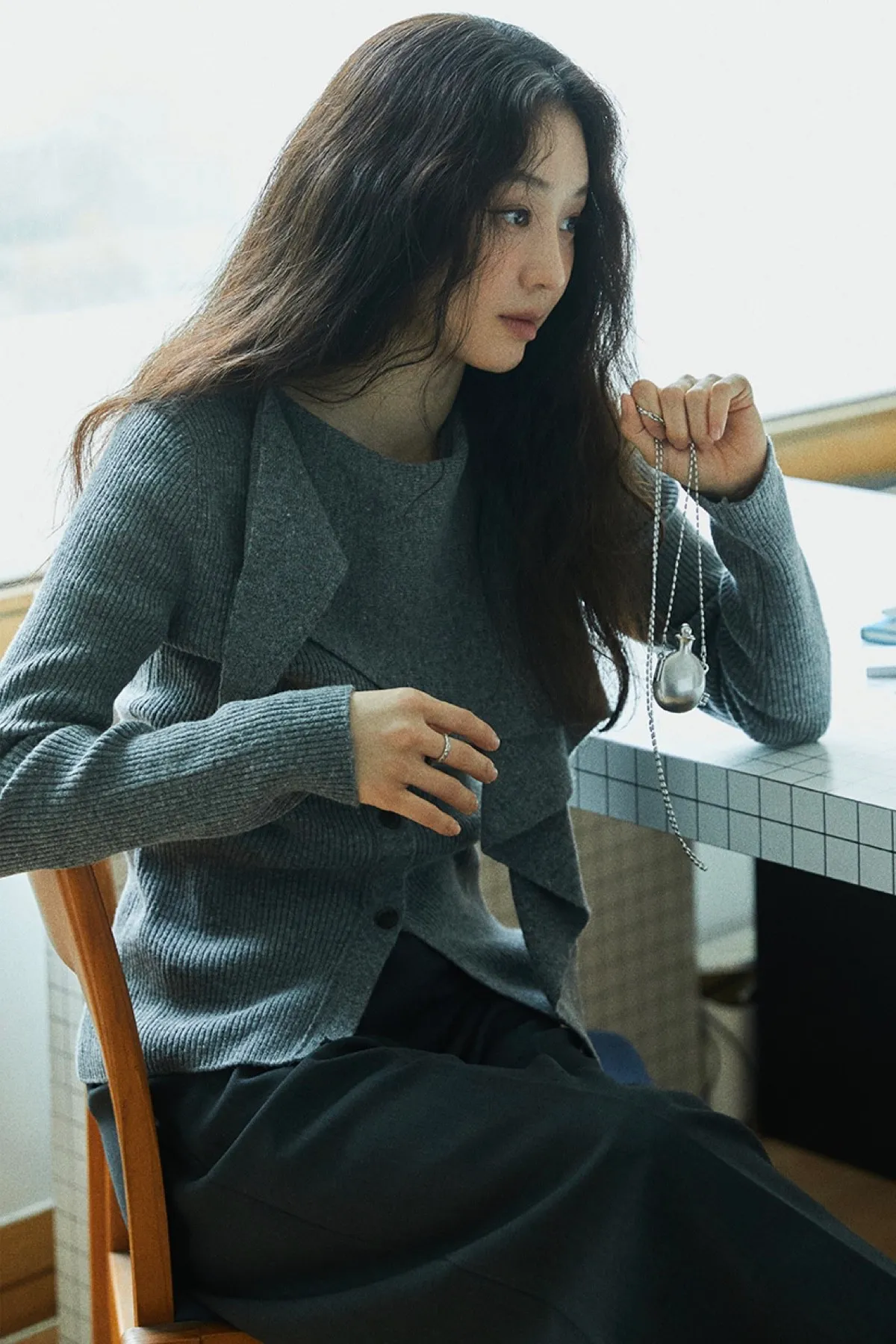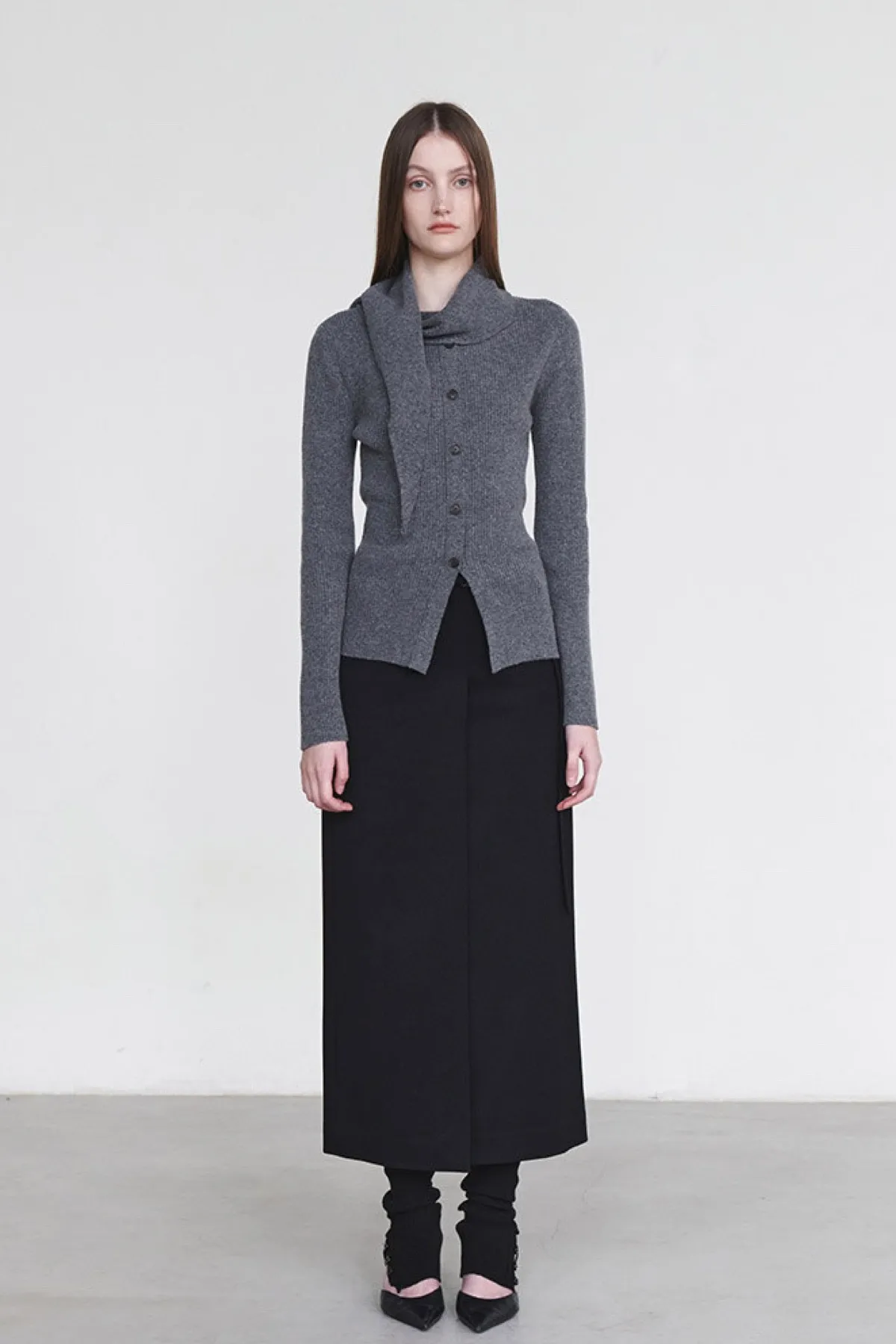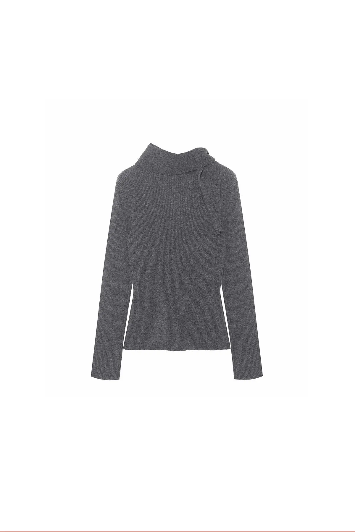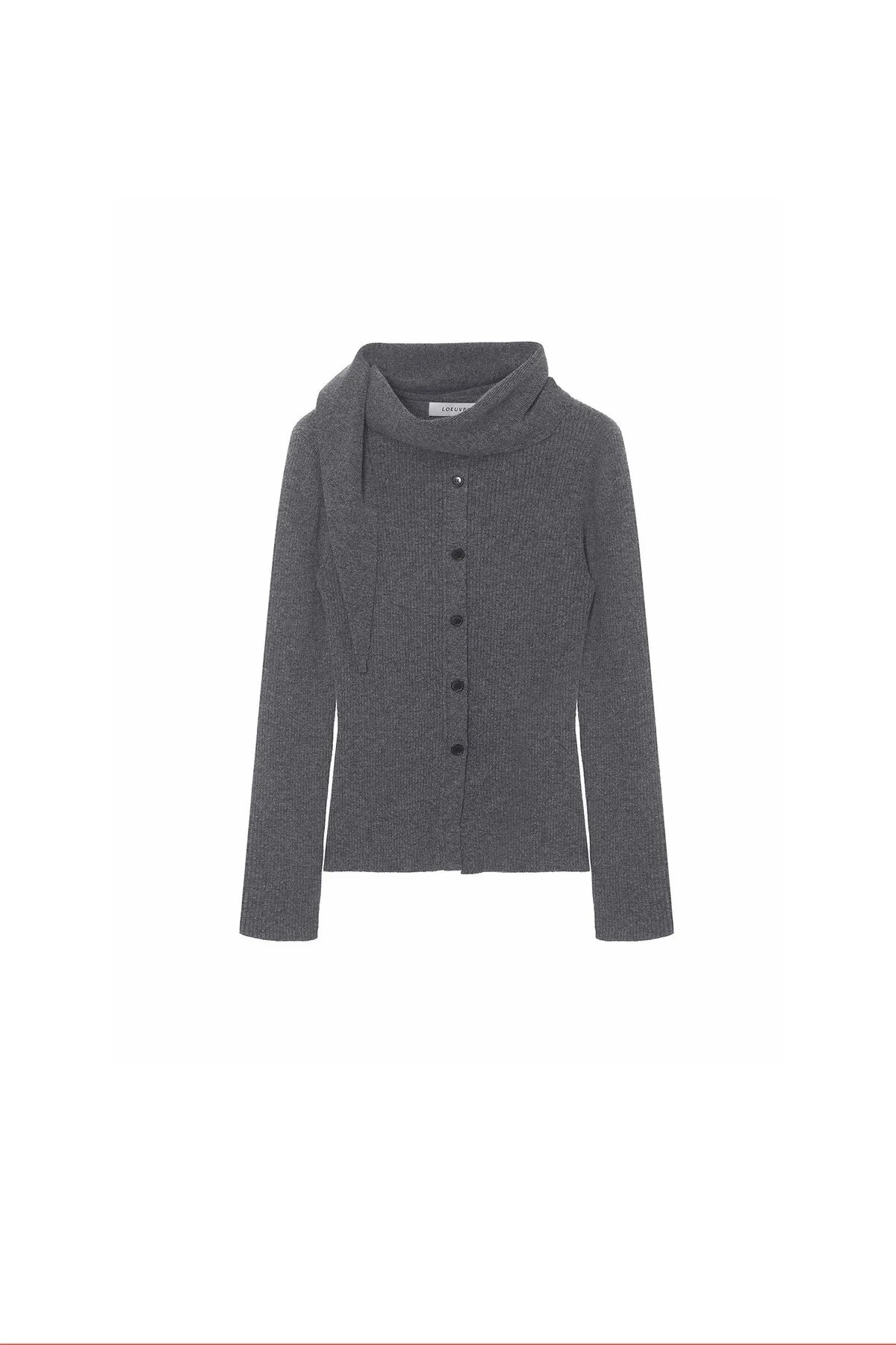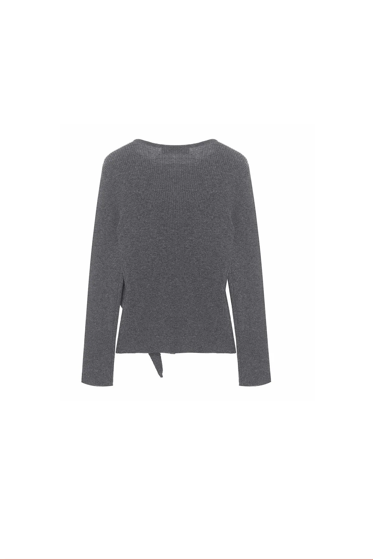 羊毛領圍設計排釦羅紋上衣(灰)