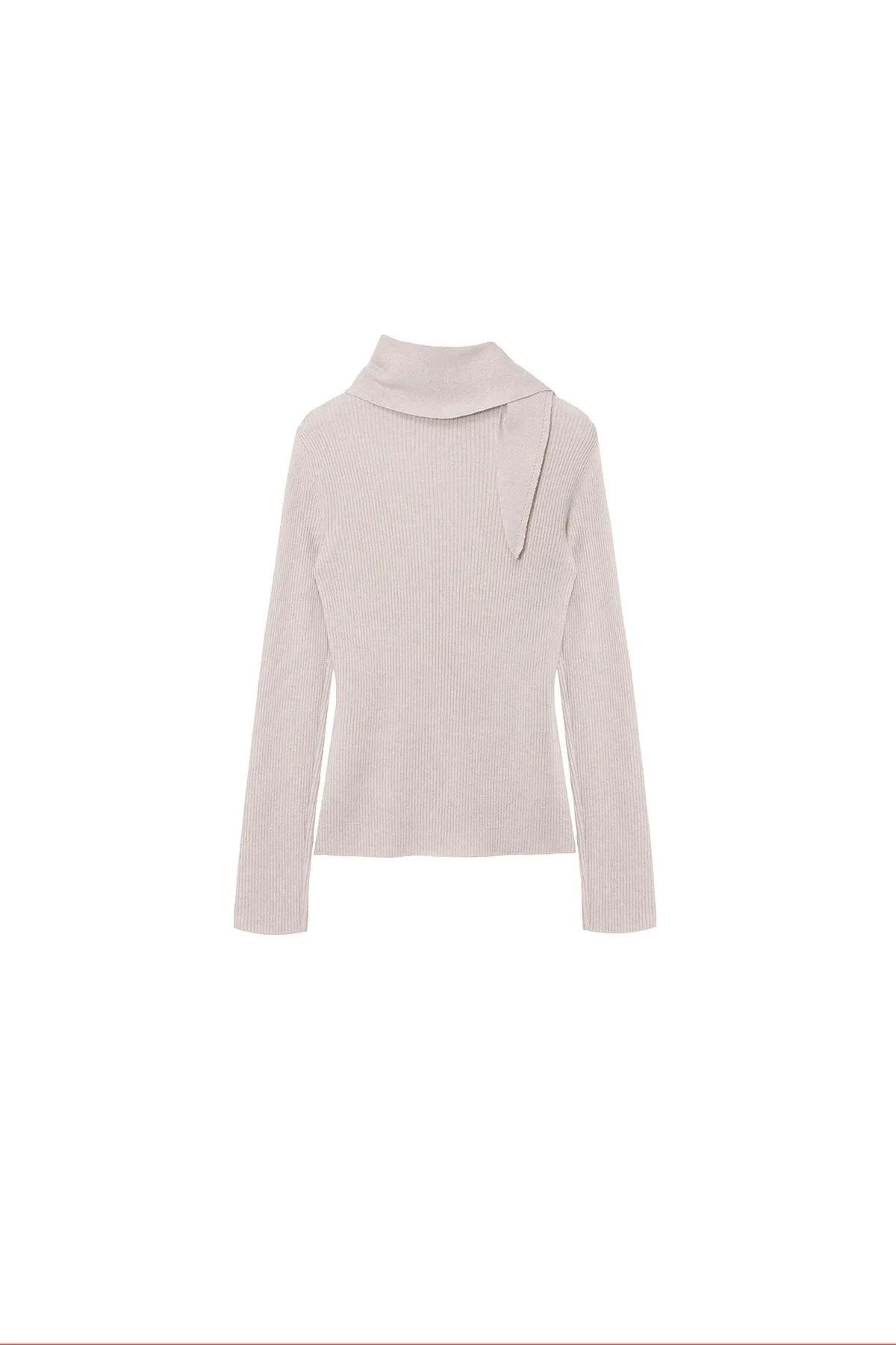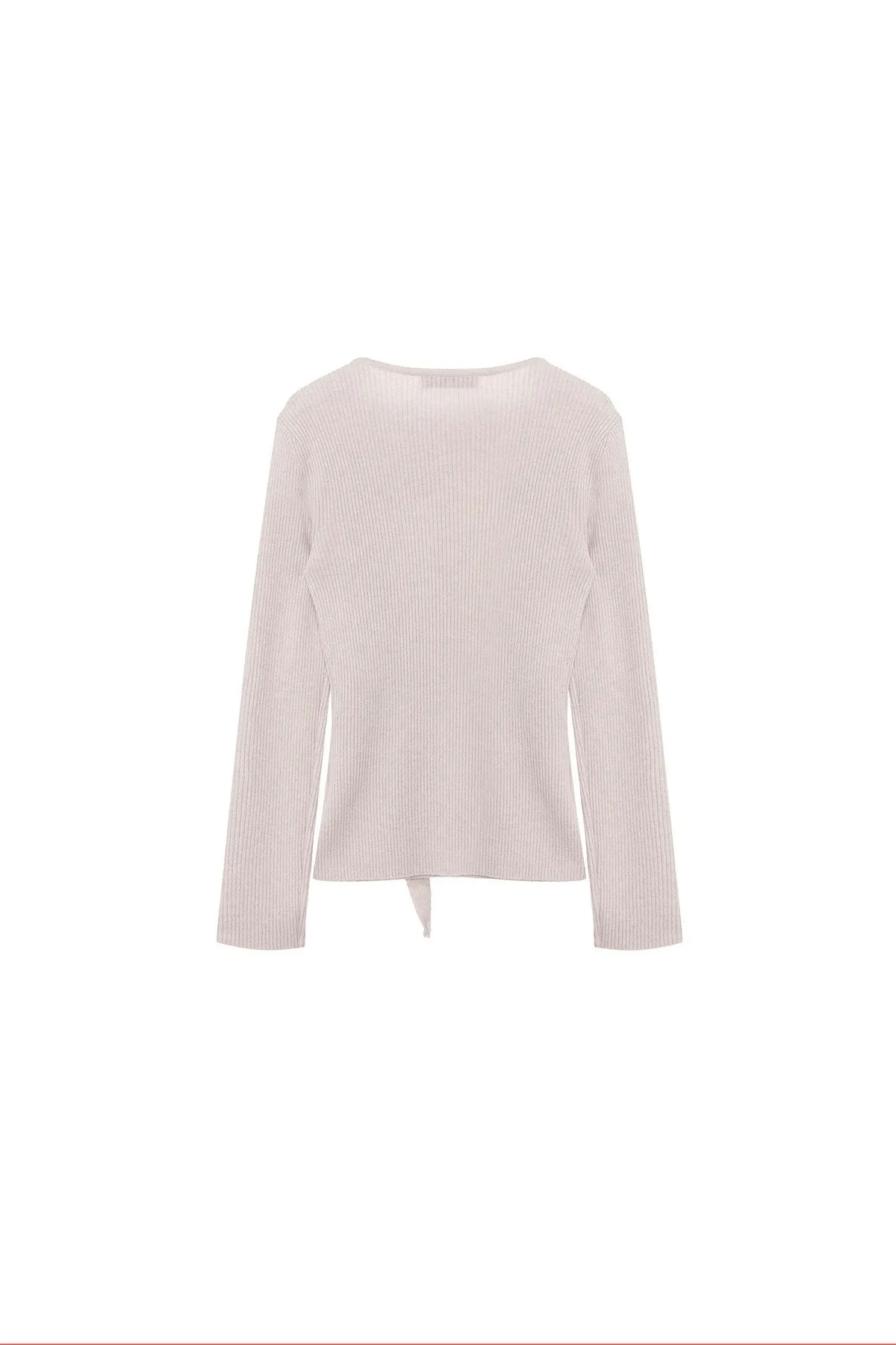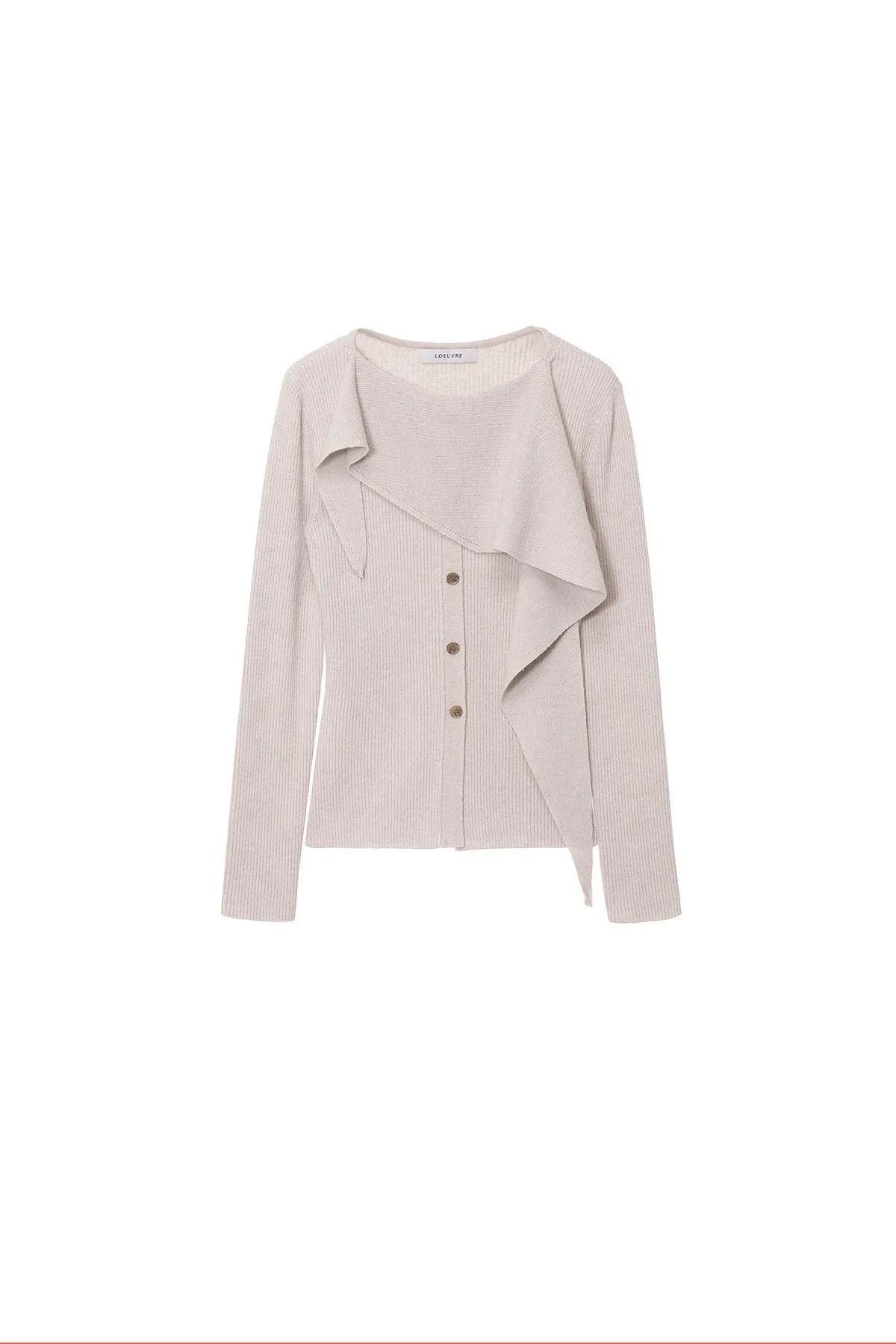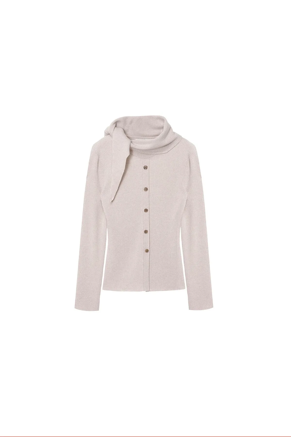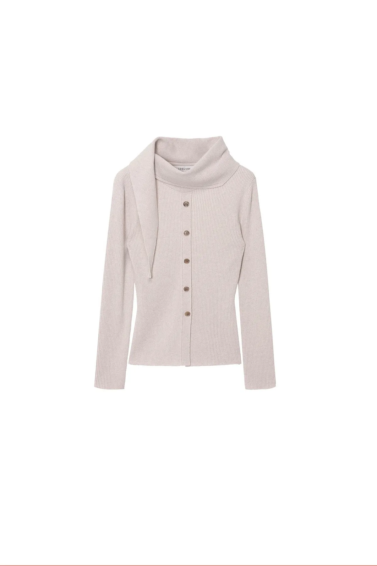 羊毛領圍設計排釦羅紋上衣(乳白)