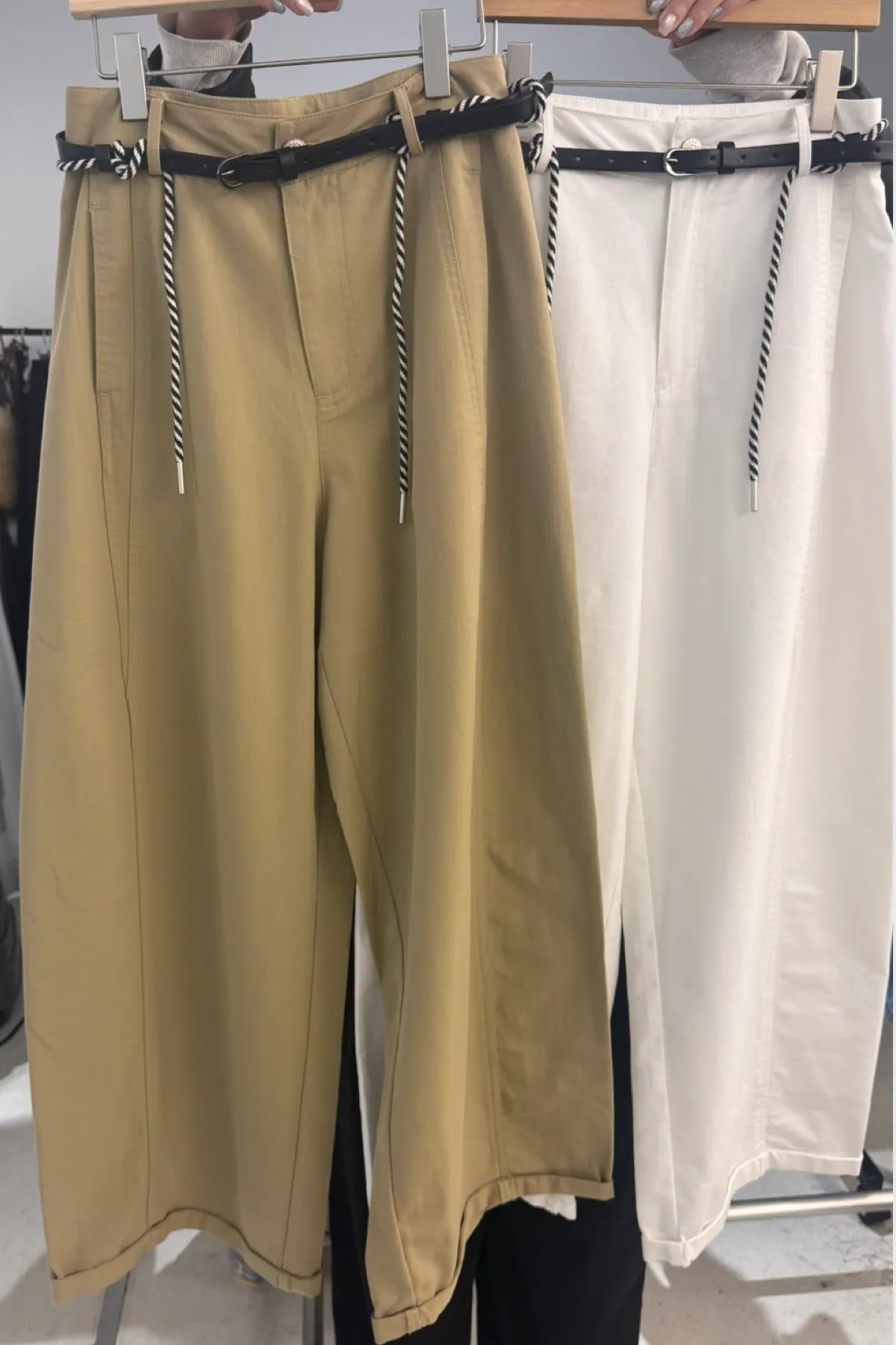 棉質腰帶反褶寬褲