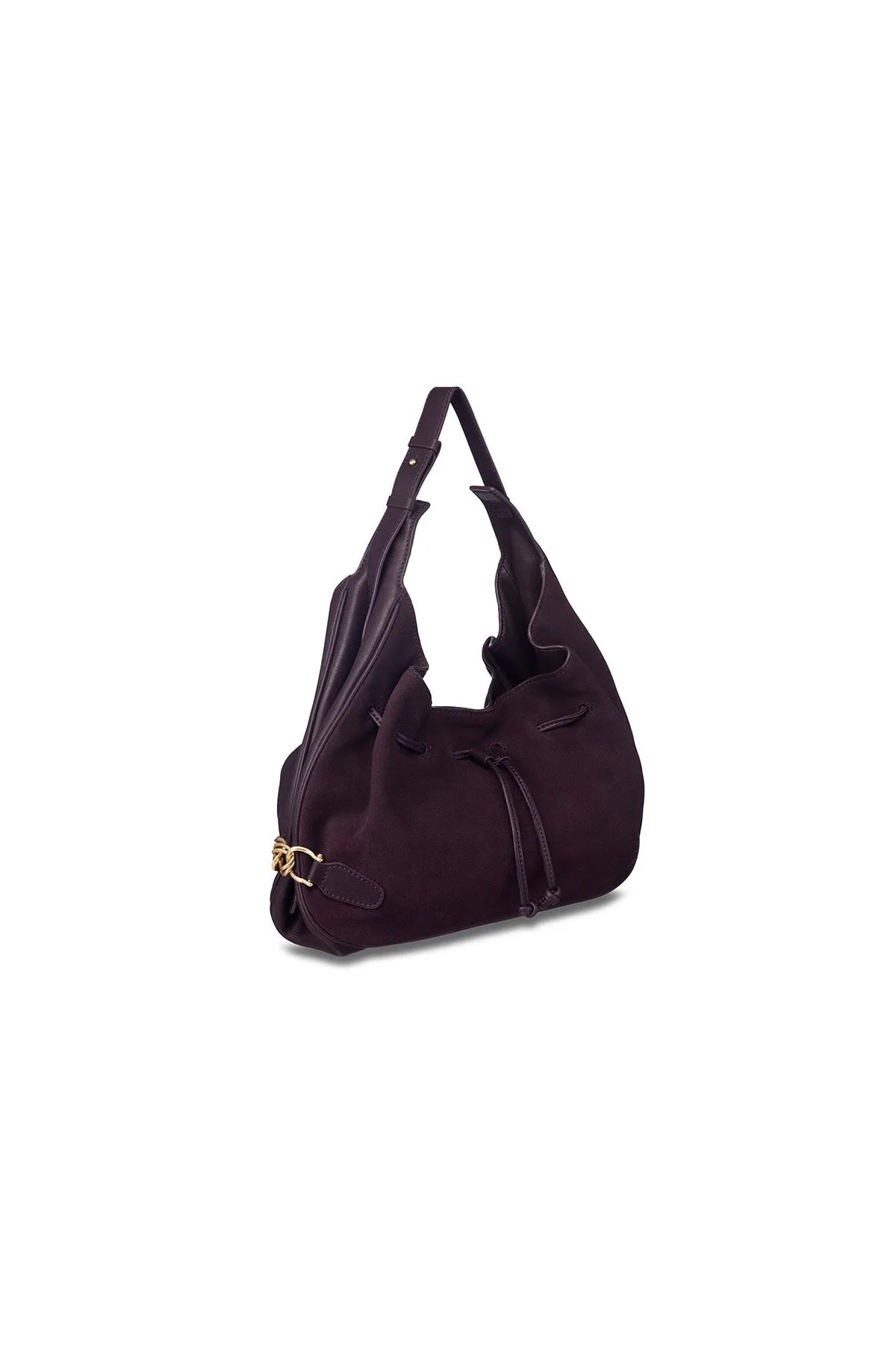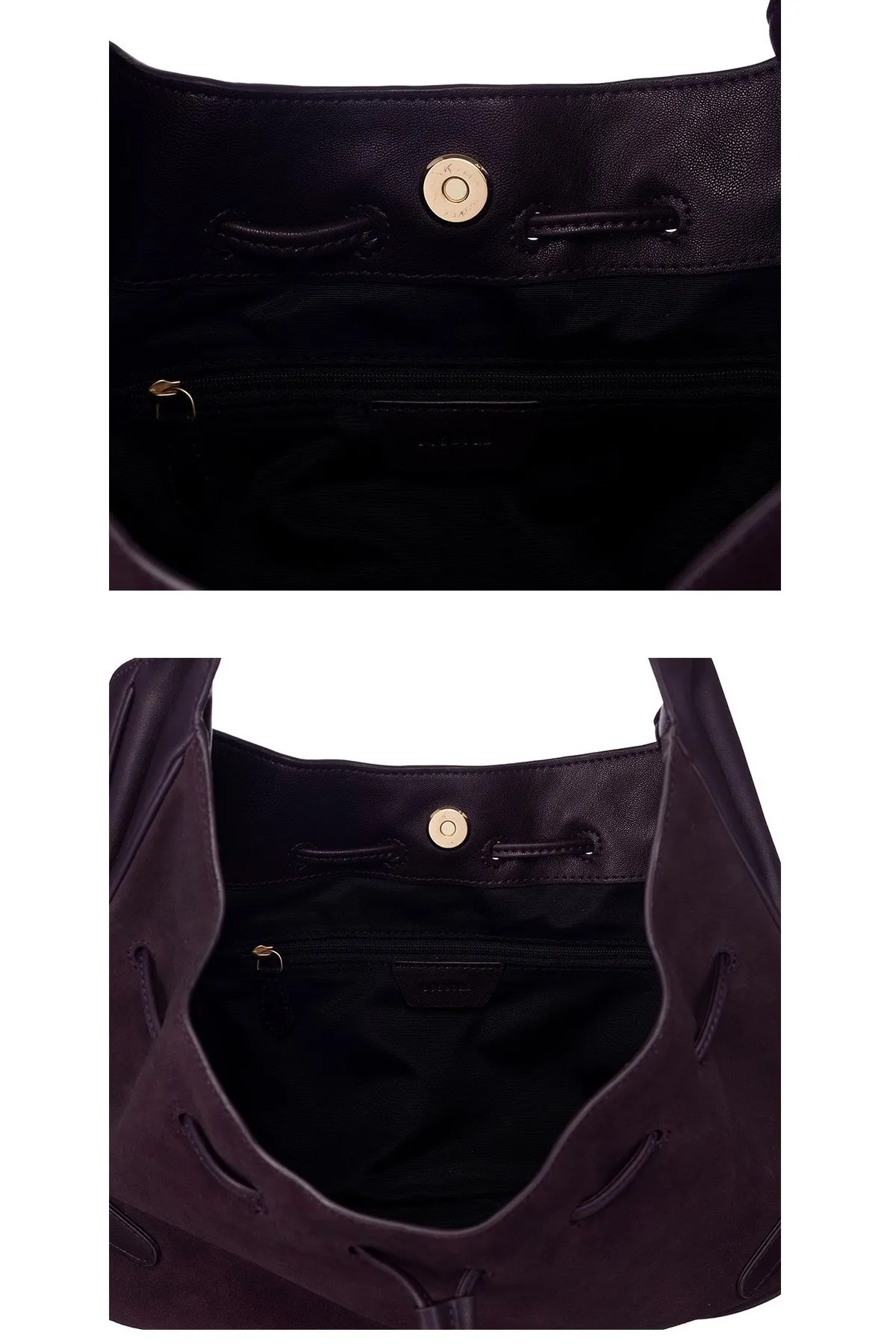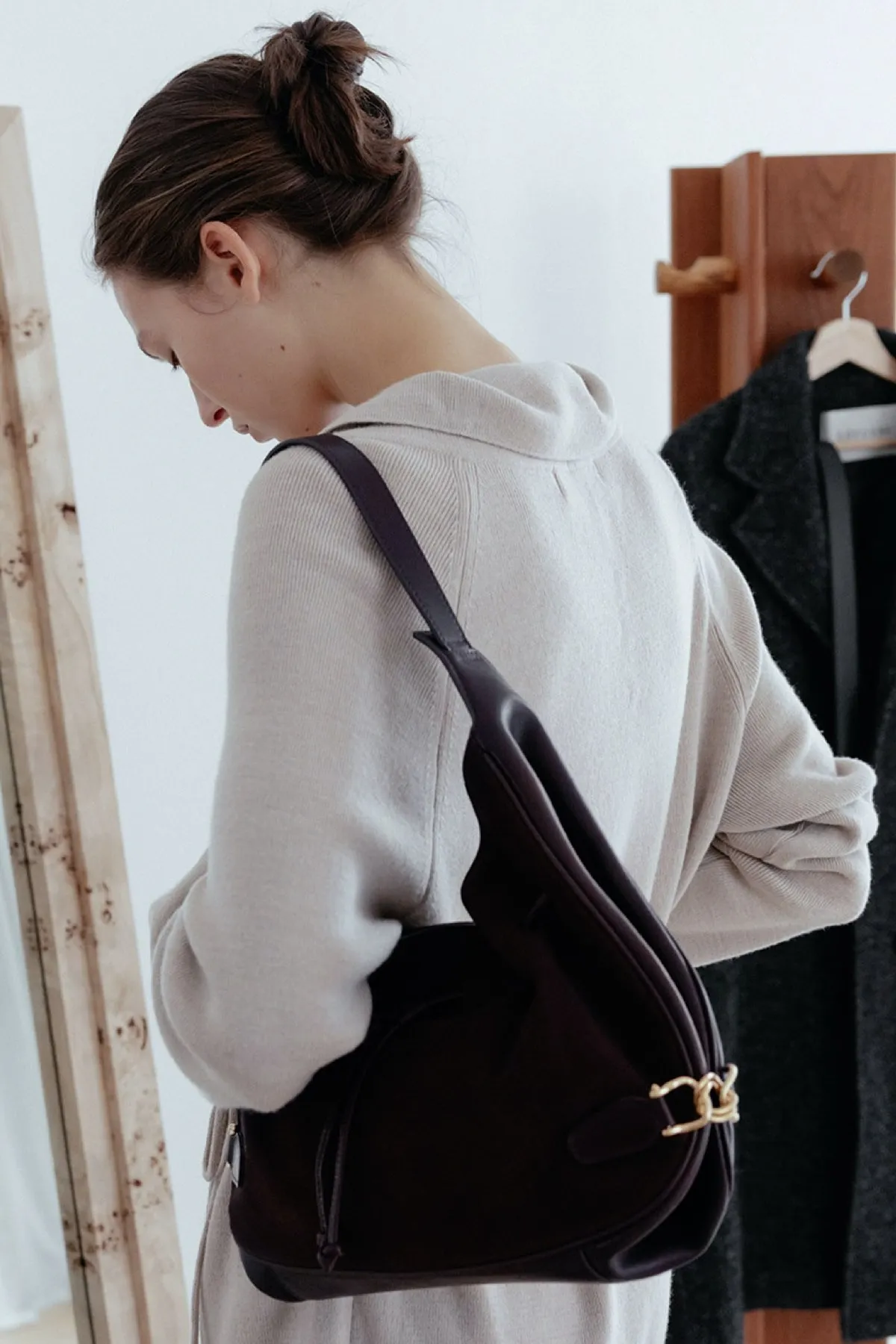 牛皮麂皮輪廓肩背包(黑櫻桃)
