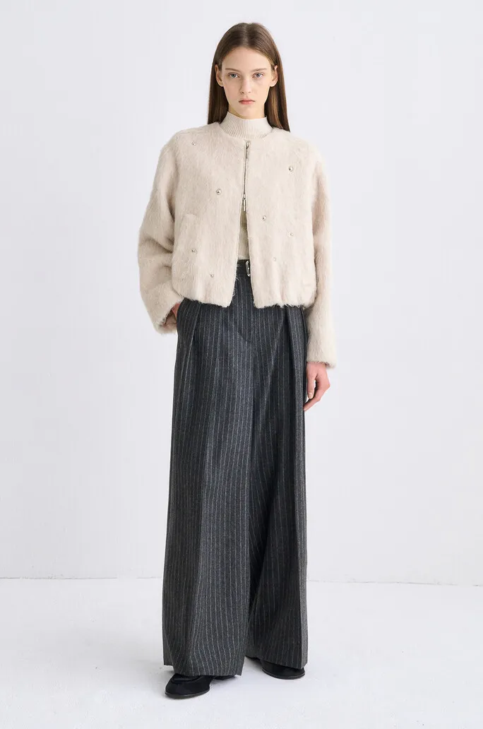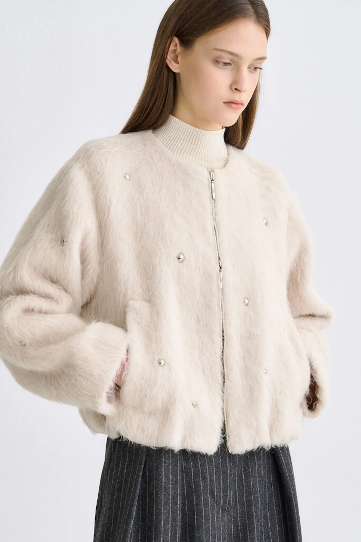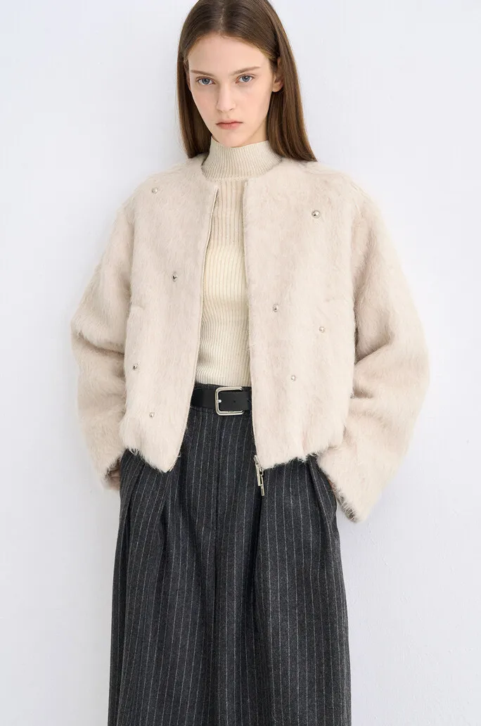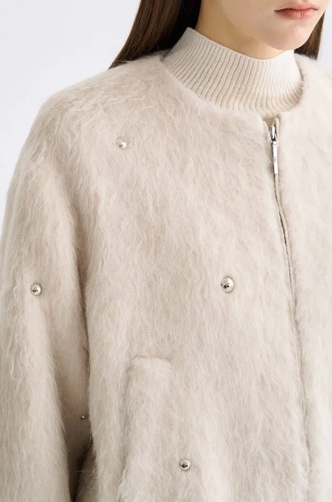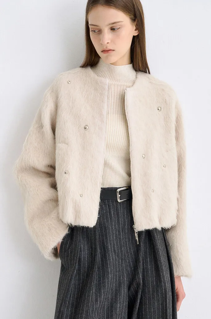 義大利羊駝毛鉚釘拉鍊外套
