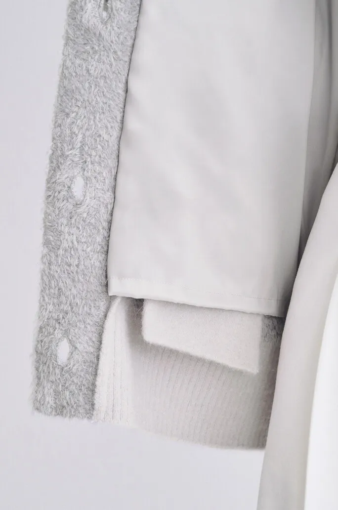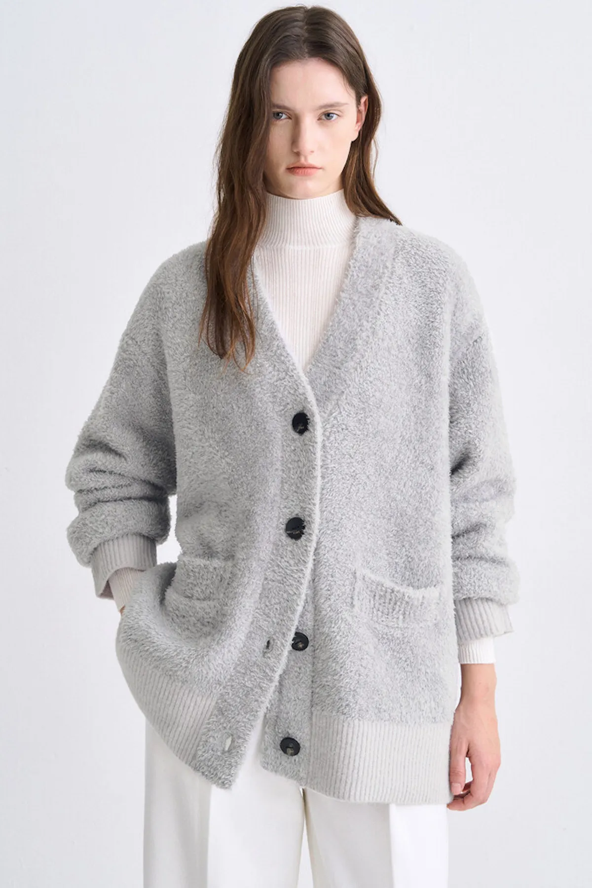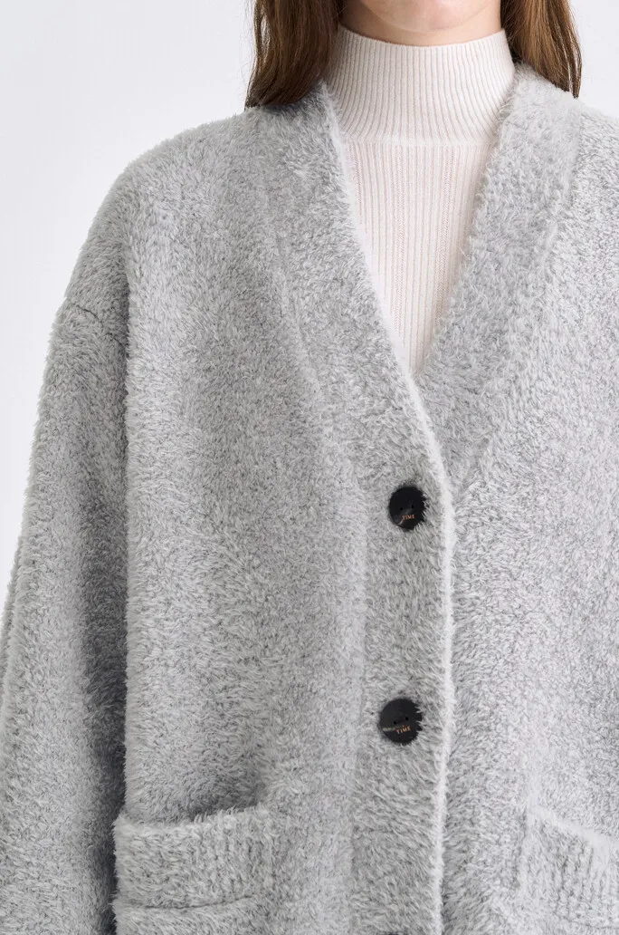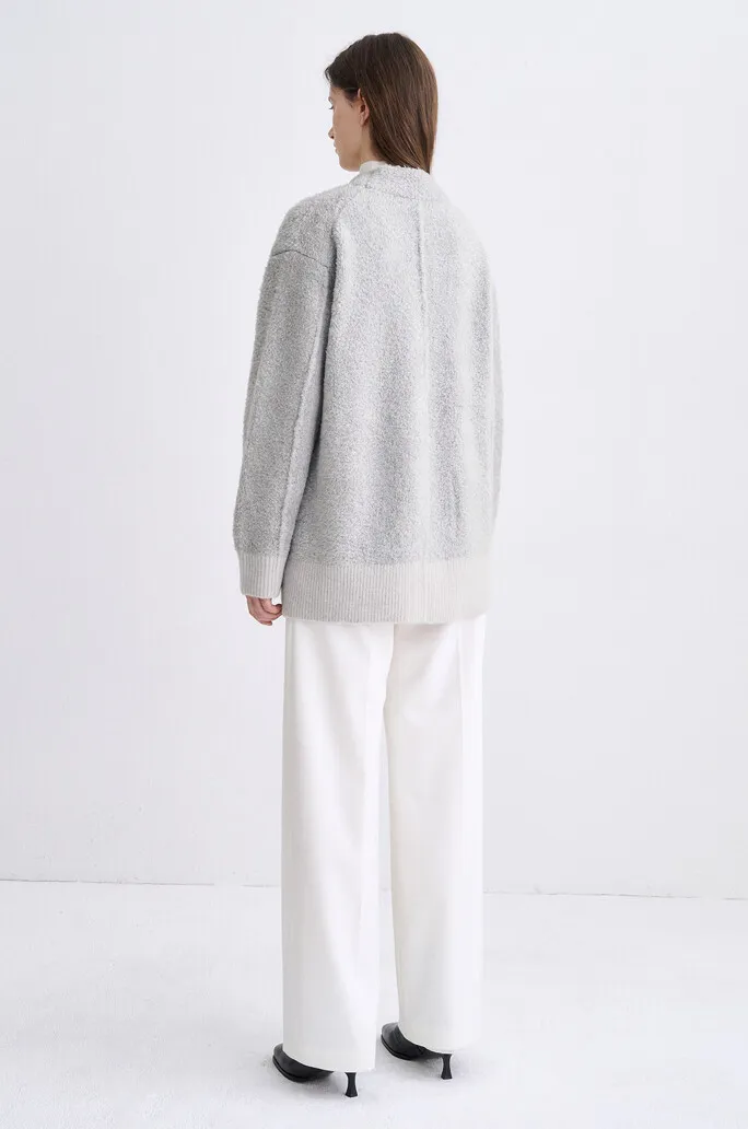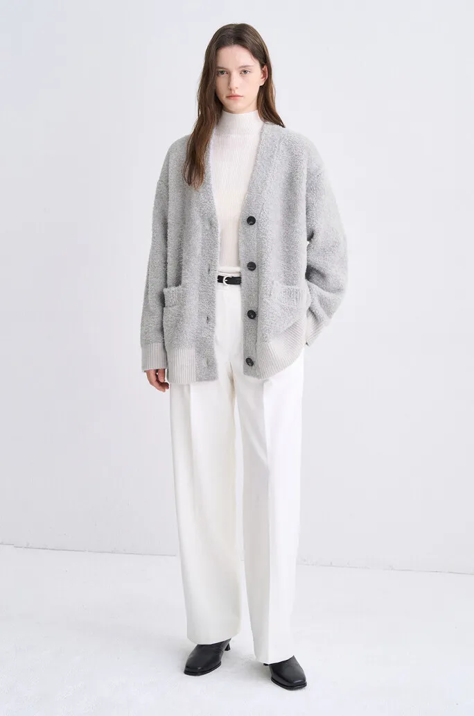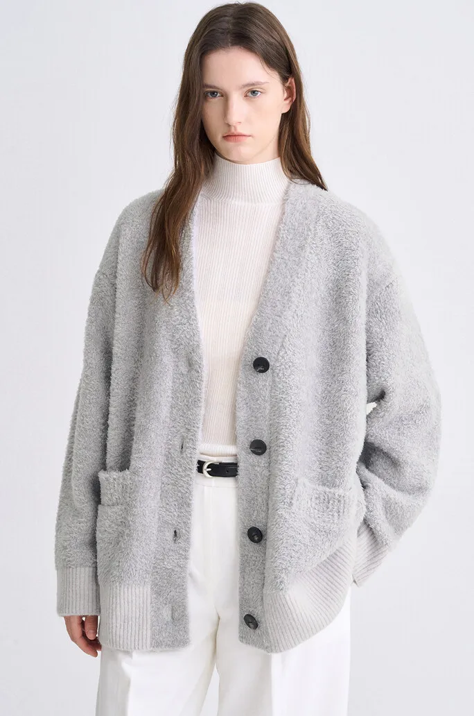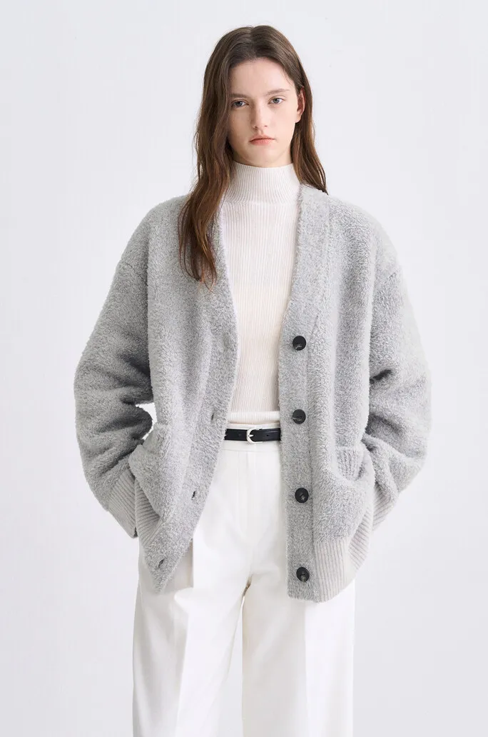 羔羊毛絲綢V領排釦衫