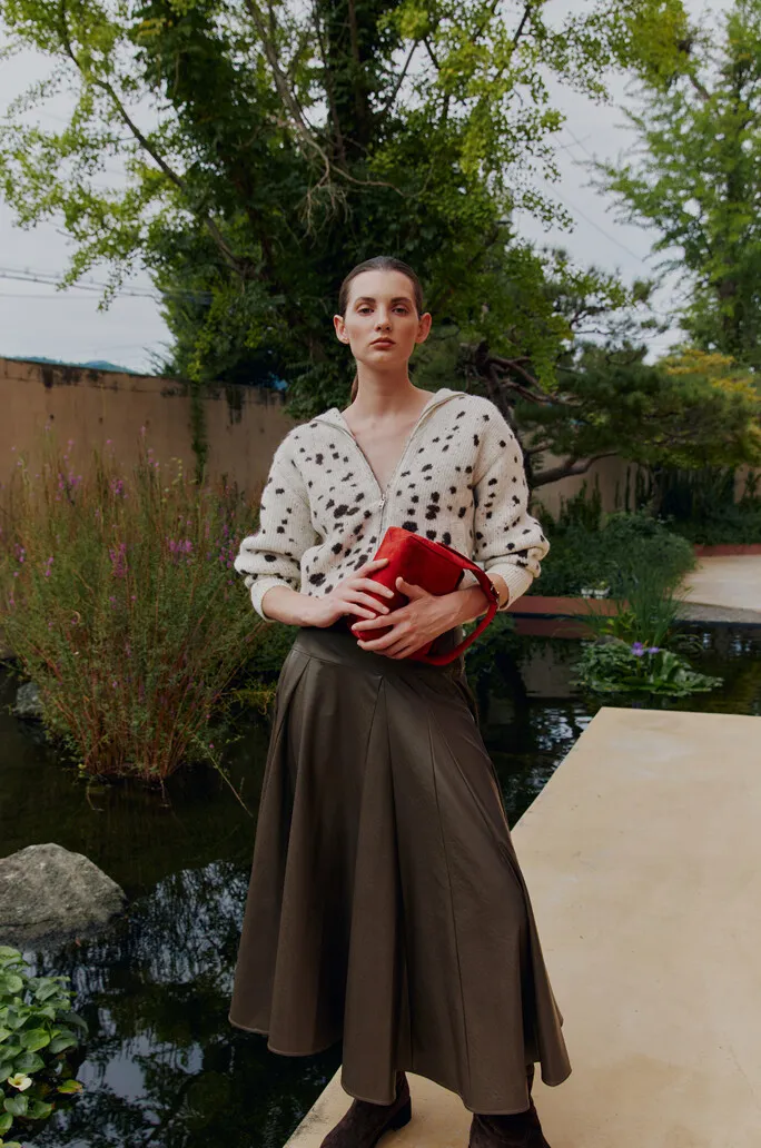 皮革打褶傘裙