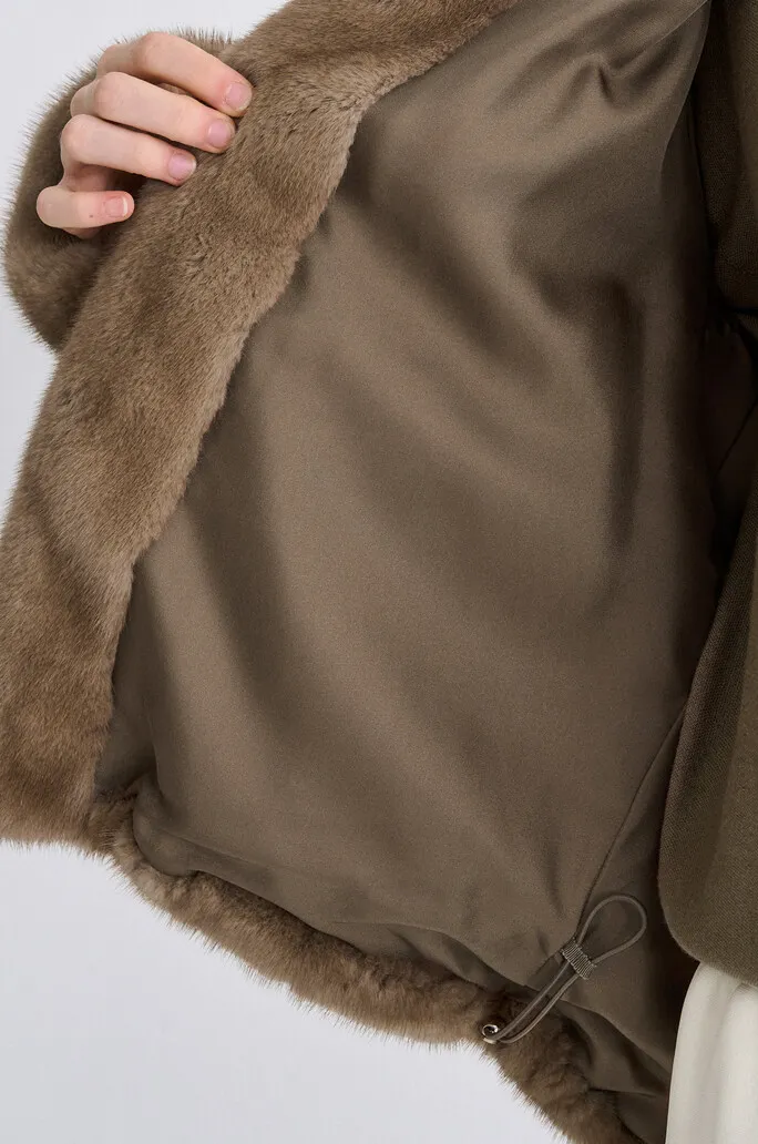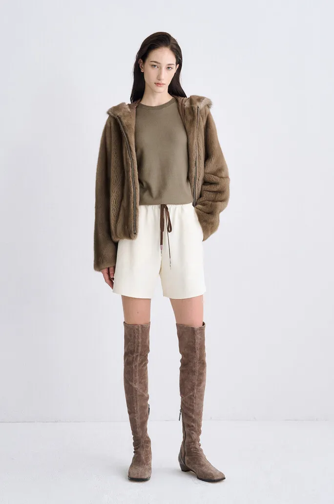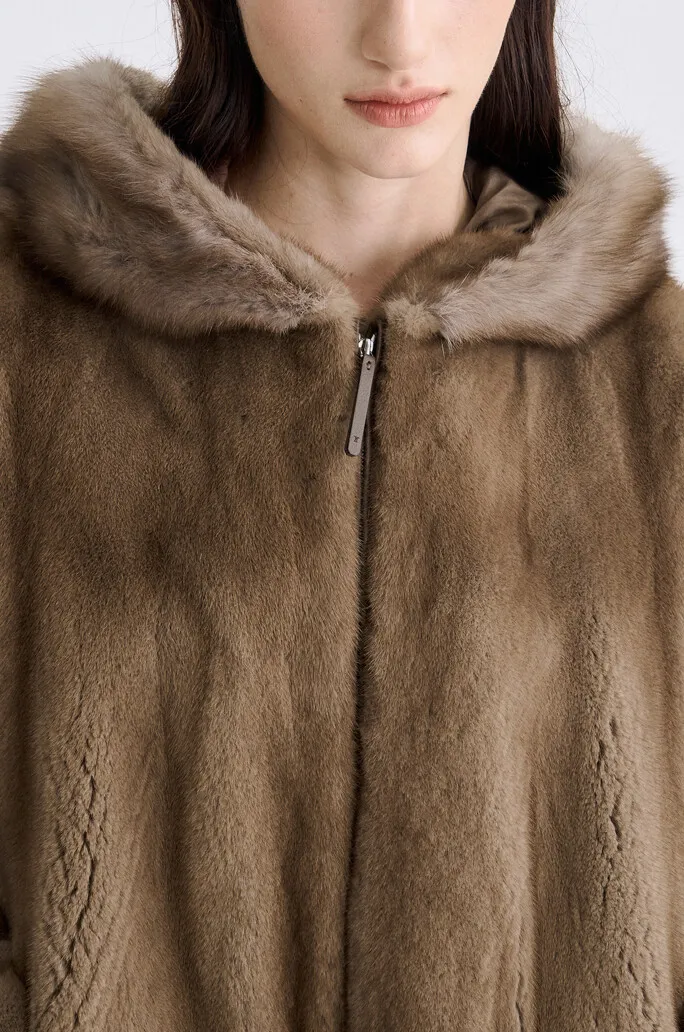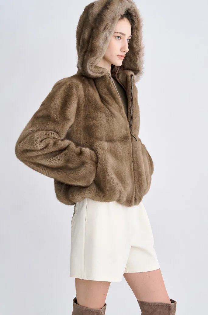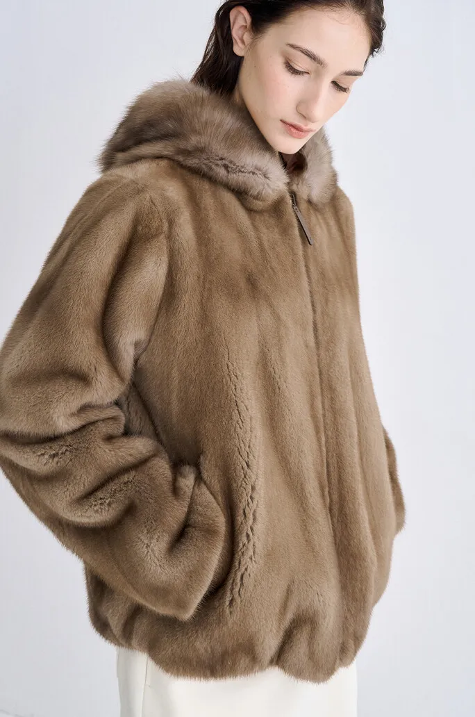 貂毛拉鍊連帽外套