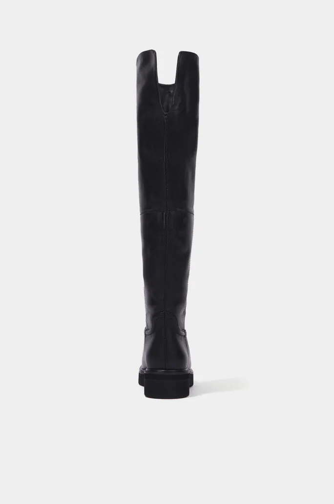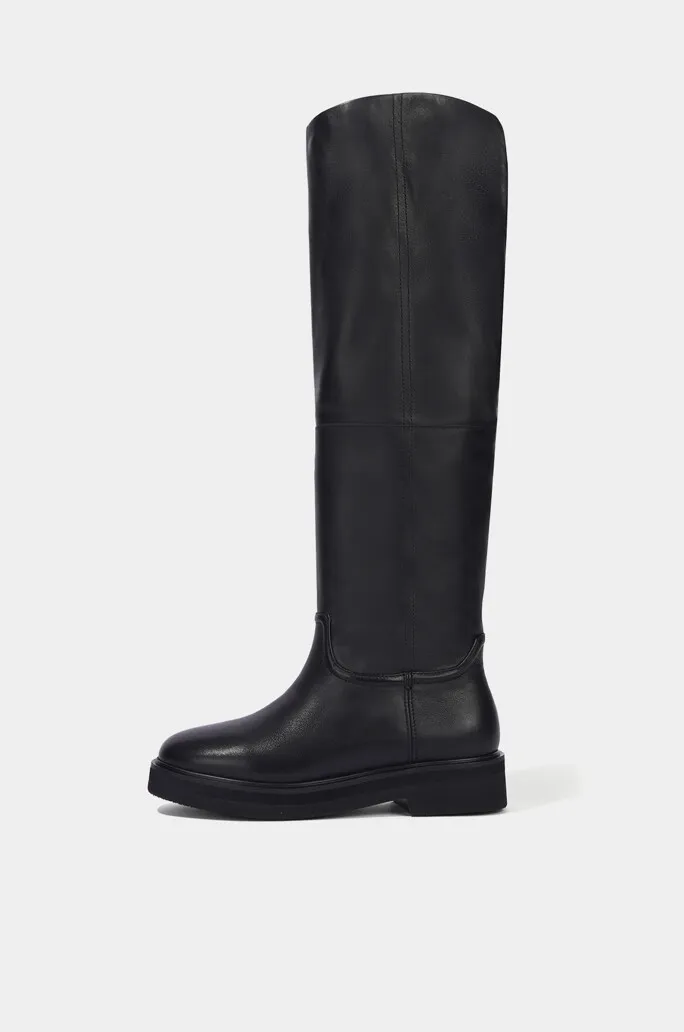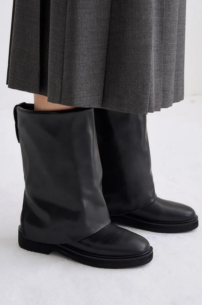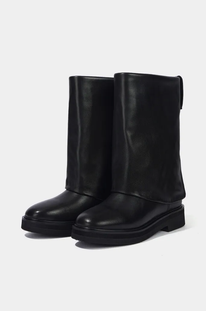 牛皮圓頭兩穿反褶靴