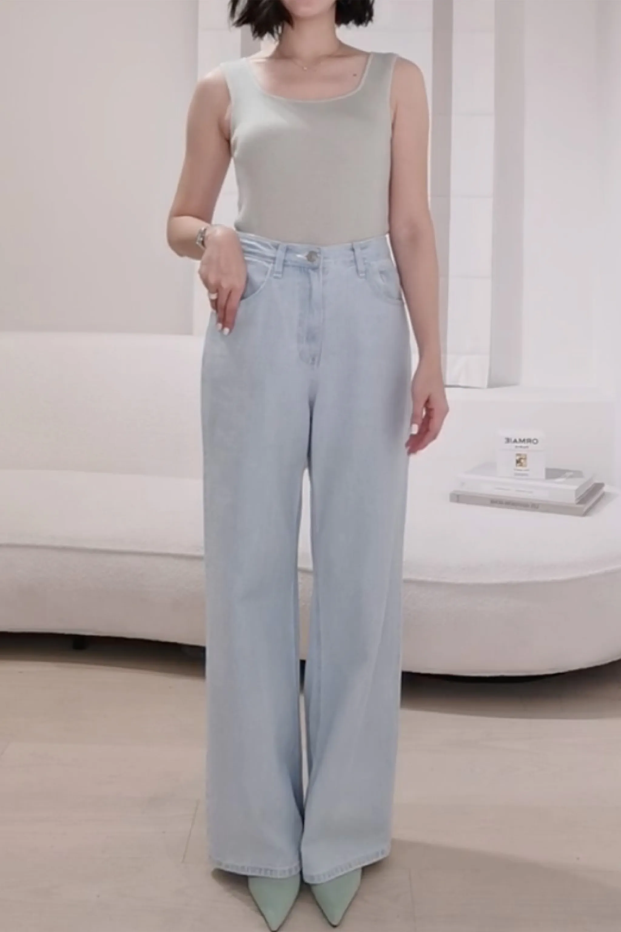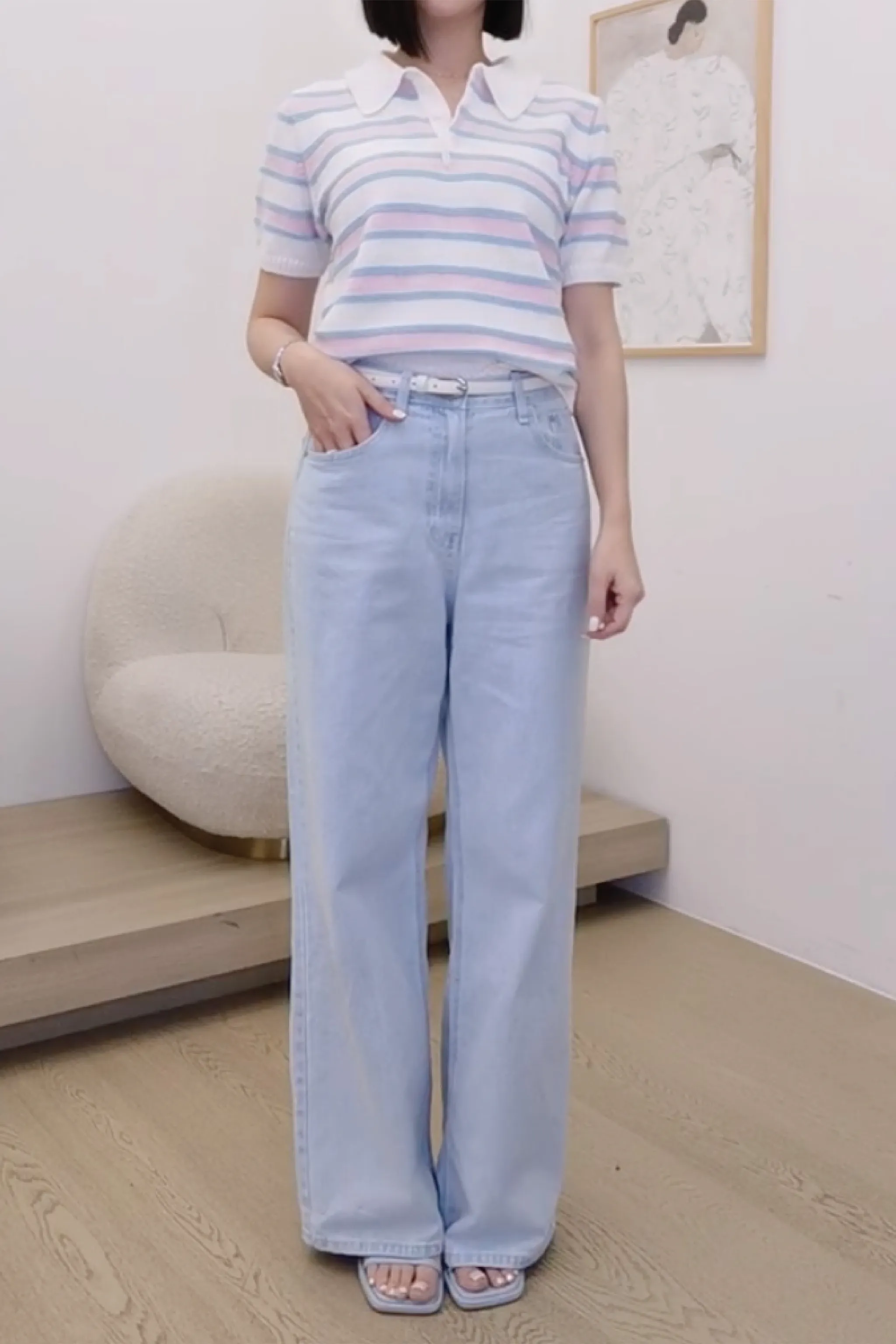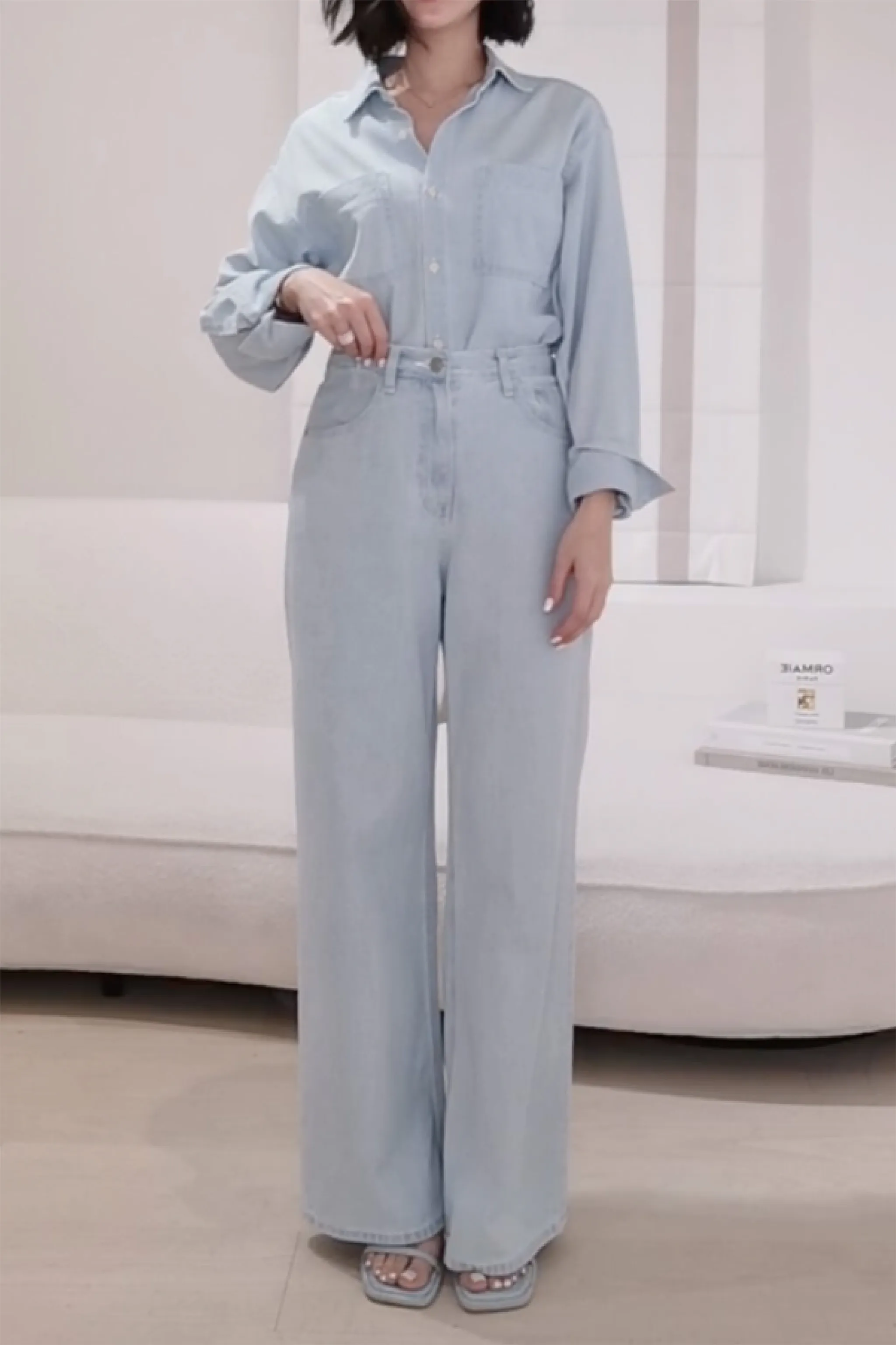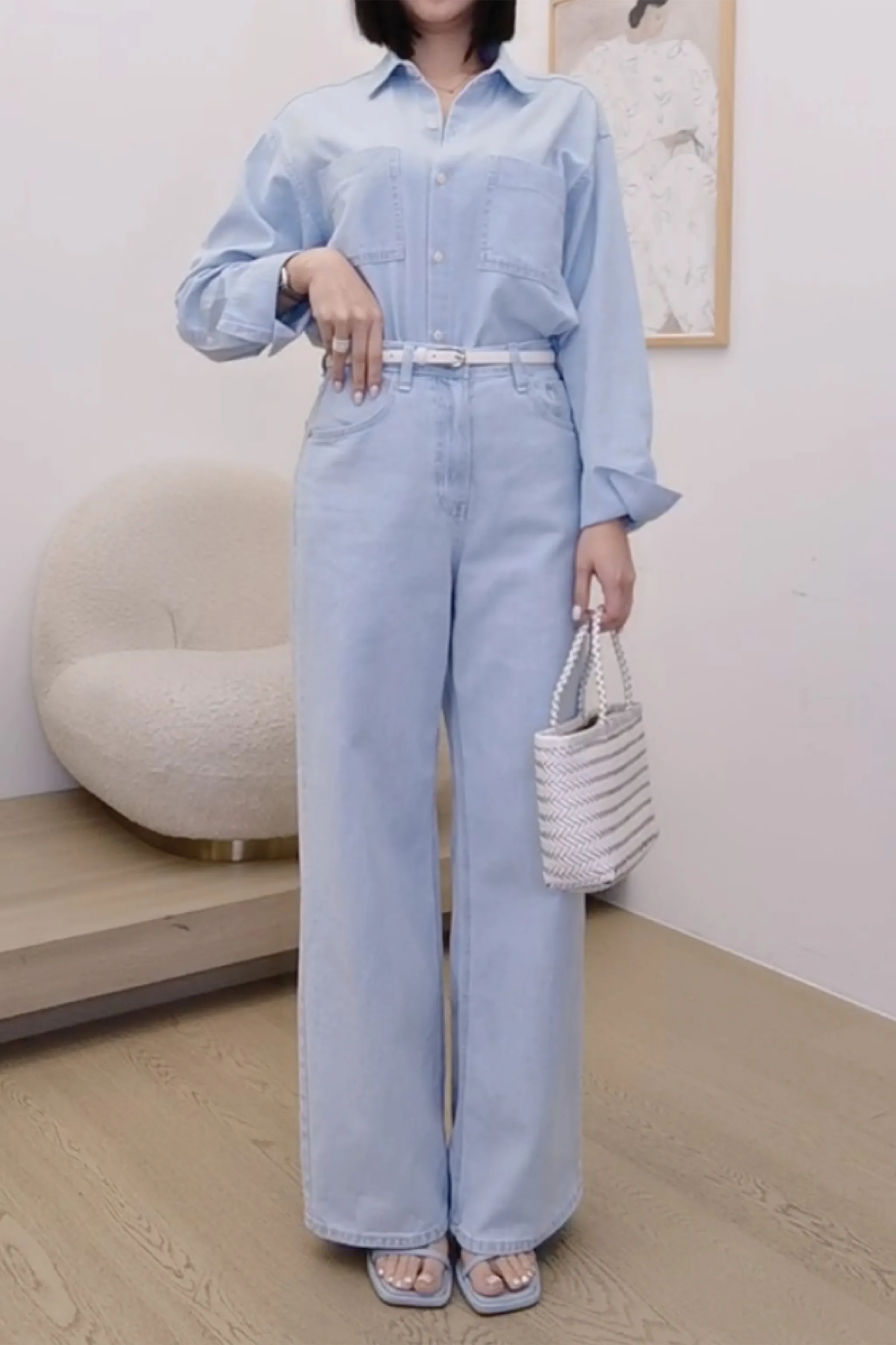 棉質銀釦淺藍牛仔褲
